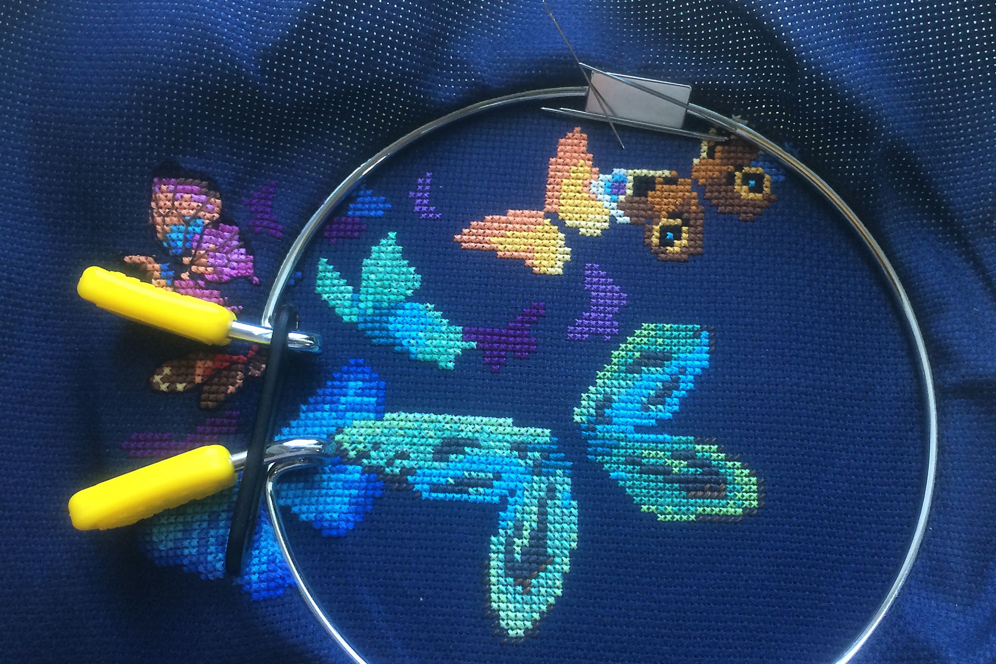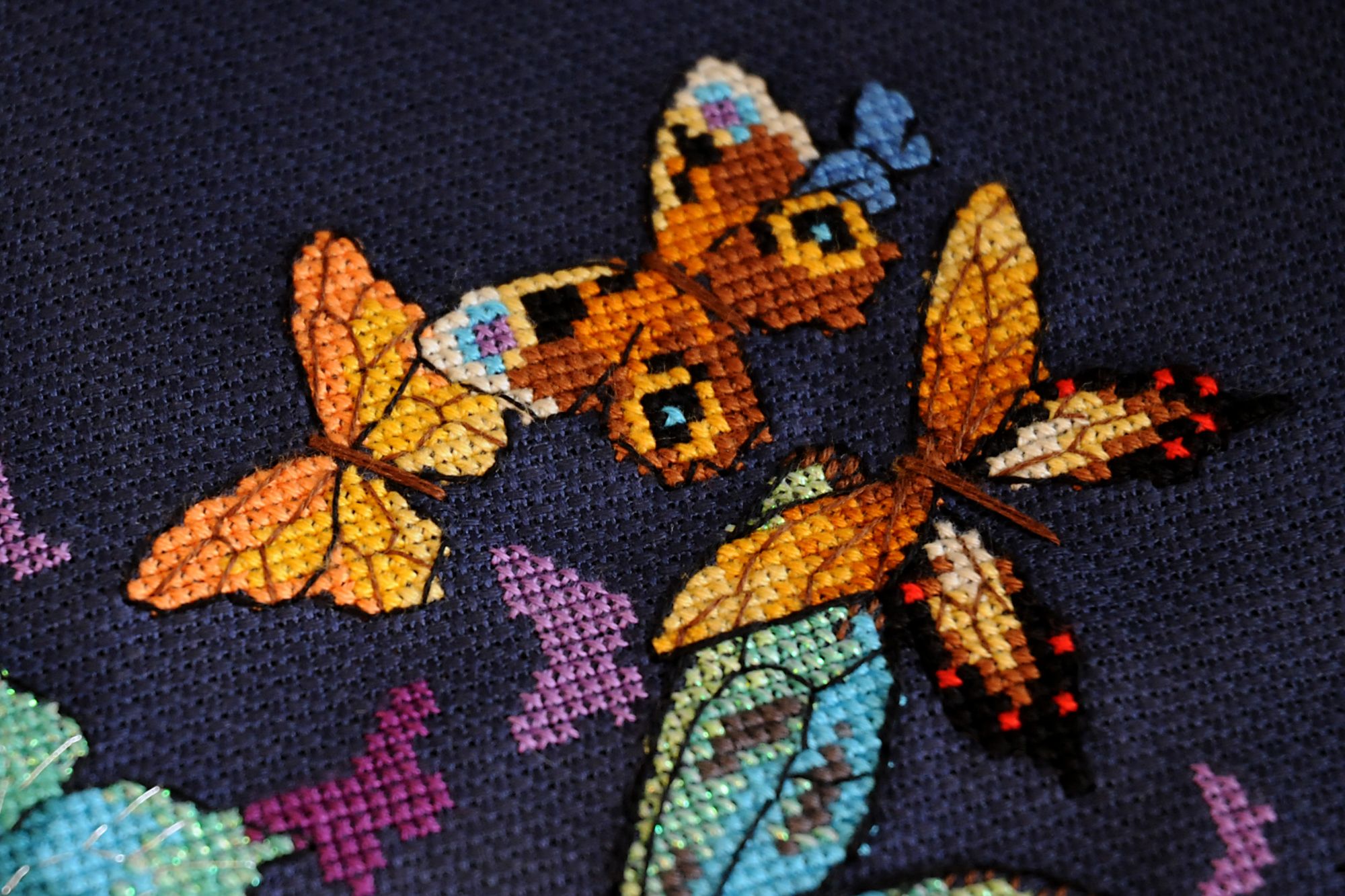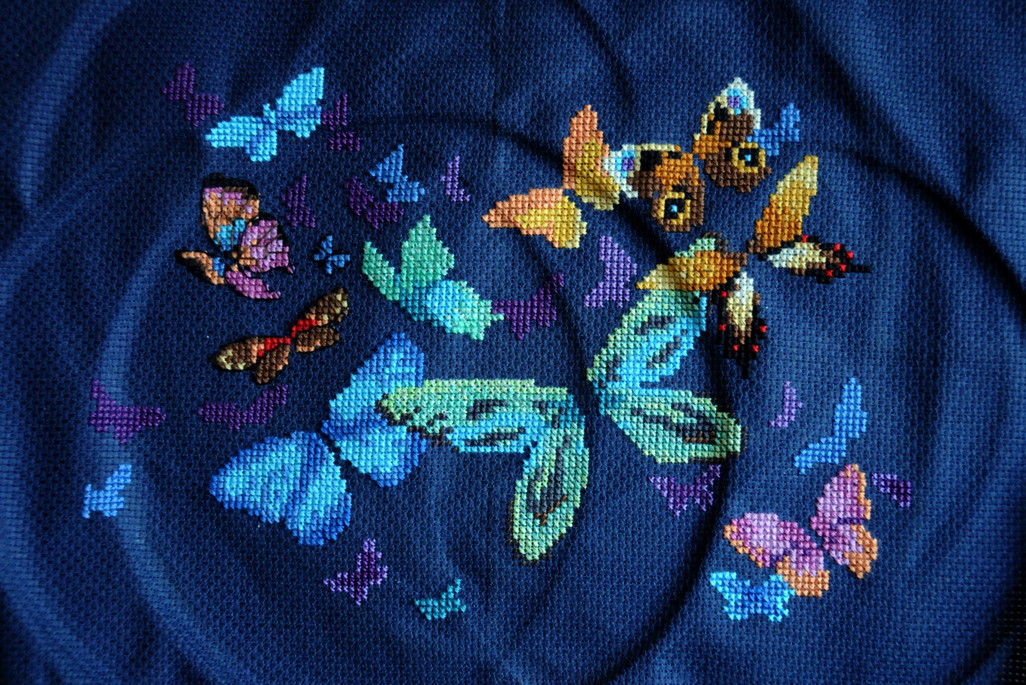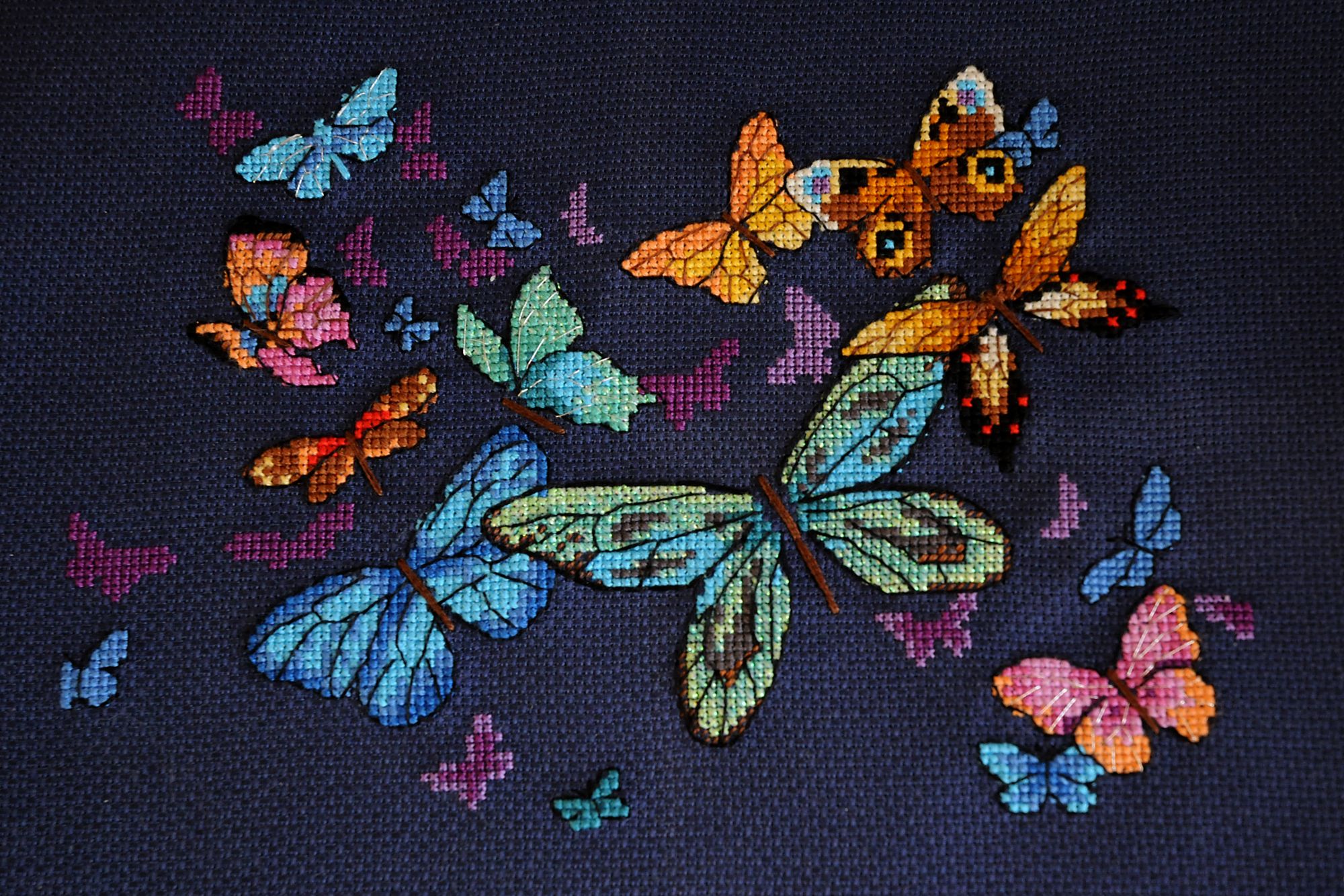 11 мая 2019 Девочки, всем привет! Созрела на отчет) Даже, наверное, на отчетище - для моих темпов это точно отчетище)))) Иногда переживаю, что захожу на форум так редко. С другой стороны, это закономерно - мой интерес к вышивке устаканился и мы с ней достигли некоторого равновесия, выявив то самое необременительное, и не очень большое, количество времени, которое мне комфортно выделять на вышивание, и степень вовлеченности в это хобби. Расстраивает, что взаимосвязь между личным интересом к своим работам напрямую как будто связана с интересом к форуму и другим вышивальным сообществам. При этом мне по-прежнему интересно, что вышивают интересные и симпатичные мне люди, но в голове сидит такой дурацкий зажим, который не пускает меня на форум, если я не вышила какой-то придуманный мной минимум крестиков))) Не знаю, насколько я понятно сейчас сформулировала свою мысль - получилась наверняка ерунда какая-то))) Ладно, от слов к делу. Сегодня и правда много новостей. Отчет будет в двух частях. В части первой будут гаечки. Гаечка 1. Позеленевшая. Я закончила Бабочек. (было - и много раз стало) Строго говоря, по схеме в работе еще должна быть серебристая рамка вокруг бабочек, которая вроде как и нужна, а вроде как и без нее тоже здорово. По ключу эта рамка выполняется металликом в шесть нитей , жизнь меня к такому не готовила, да и, признаться, такой вариант мне не очень нравится. Скорее всего, я перед оформлением прилажу к работе какой-нибудь тоненький серебристый шнурок и покажу уже готовый и оформленный вариант. Процесс обалденный. Крылышки получаются светящимися, очень яркими. Работать на 18 аиде было не очень сложно. В целом, работа вышивается достаточно быстро. Бэка относительно много, но он такой логичный, что самое сложное - это заставить себя его начать делать, дальше все само как-то получается. На бэк у меня ушел один долгий вышивальный вечер) Единственная сложность, которая меня поджидала и немного потрепала мне нервы - это крейник в смеси с бирюзовым и бирюзово-зеленоватым мулине. Если вы уже работали с крейником, то знаете, что он капризничает: пушится, расползается, не хочет ровно укладываться в крестики. Здесь мне очень помогла Света @Svetl@n@, подсказав, что можно попробовать вышивать крейником поверх уже готового крестика (по схеме идут крестики блендом из двух ниточек крейника с одной ниточкой мулине). Я последовала Светиному совету и вышивала цветные крестики в одну ниточку и затем по верхнему стежку проходилась крейником. Результат - просто небо и земля. Вы можете увидеть разницу на фотографиях. Маленькая зелено-голубая бабочка и часть большой центральной вышиты по-старому, а остальная часть большой центральной - уже по-новому. Очень действенный совет, правда. Гаечка 2. И тоже позеленевшая. Наташа @Mizeri закончила мой зимний одеяльный робин от Leisure Arts. Вот он какой красивый получился. Наташа, спасибо большое! Даже не верится, что уже скоро-скоро я увижу эту красоту своими глазами Гаечка 3. Позеленевшая, не успев покраснеть) После Бабочек снова захотелось чего-нибудь свеженького и небольшого. В руки прыгнула синяя Мельница от РТО (RTO C280 Мельницы). В качестве основы я взяла на пробу Лукан 32 каунта. Моя вышивальная подруга с работы очень его расхваливала и дала мне небольшой кусок, как раз для такого камерного дизайна. Процесс пролетел достаточно быстро. В ни