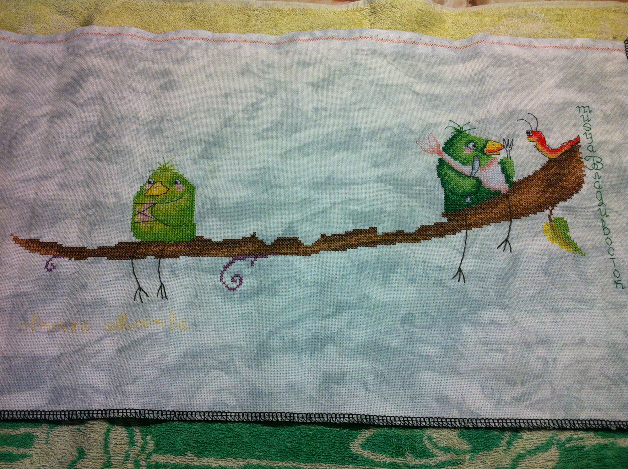 12 августа 2017 Девочки, смогла я все-таки вчера и получить, и отправить Робин. Кондитерская - это что-то невероятное нежно-воздушно-ванильное. Сегодня начну шить обязательно. Подпись в птичках сделала и вот, что получилось. Мне кажется, что очень даже не плохо, поэтому сразу отправила, не дожидаясь вердикта Олеси. А то вдруг не будет времени на почту сходить сразу после выходных и пролежат они у меня еще неделю. А так за это время посылка уже до Оли доберется. Ну и общий вид. Лапки у Олиных птичек я не переделывала полностью, а прошлась в одну нить поверх первого бэка. Я где-то у себя так исправляла бэк, уже не помню правда где, но получилось хорошо, поэтому решила так попробовать. belyasik, Lesya80, PrimaN и 3 других сказали спасибо Поделиться сообщением Ссылка на сообщение