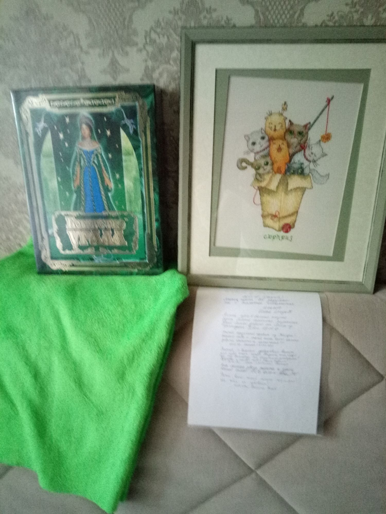 8 сентября 2018 Всем привет, девочки, ну вы даете!Я обалдела, я в полном восторге!Так вы втихоря вышили для меня целую картину, да еще оформили то как!Большое, большое спасибо вам, мои дорогие, настроение заметно поднялось!Пишу с телефона, так бы смайлики наставила!Котики чудесные, веселые, буду смотреть на них, и вас вспоминать, и настроение себе поднимать!Еще мягонький, тепленький шарф или пледик, очень уютный!Конфеты еще не открывала, уверена, что они вкусные, а какие добрые слова вы мне написали, первым делом их прочитала и стала догадываться, что как, неужели...девочки для меня вышивали, слезы на глазах...слезы радости, и непонятное чувство , что со мной происходит, еще раз всем вам большое, большое спасибо!На обратную сторону приклею ваш листик с добрыми пожеланиями! queen-margo, lamina-65, Путешественница и 6 других сказали спасибо Поделиться сообщением Ссылка на сообщение