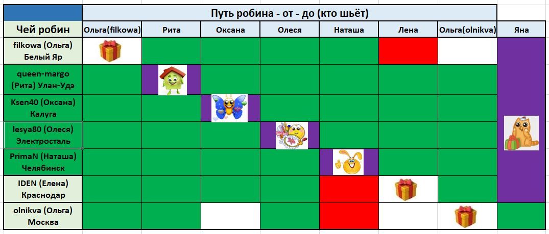 3 октября 2018 5 часов назад, filkowa сказал: Оля, отметь, пожалуйста, Наташа отправила твой Робин Оксане. Оля, спасибо. Отметила. У меня к тебе просьба. Напиши, пожалуйста, в профиле о своих предпочтениях. Твой робин уже едет ко мне, и я начинаю волноваться. Lesya80, belyasik, filkowa и 2 других сказали спасибо Поделиться сообщением Ссылка на сообщение