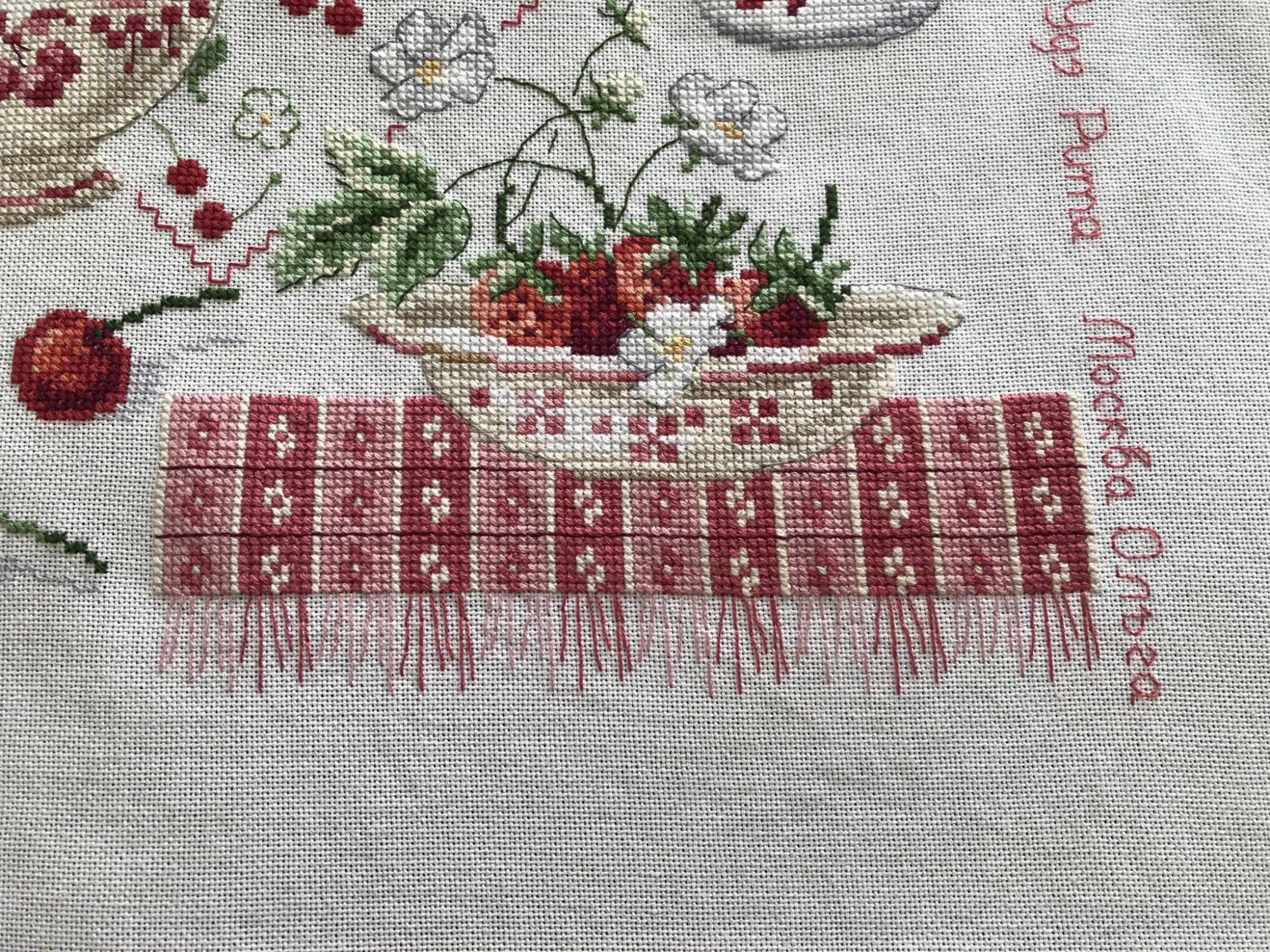 25 ноября 2018 31 минуту назад, olnikva сказал: Оля, как красиво! Если ты имеешь в виду бэк внизу на миске с клубникой, то я не стала шить, т.к. подумала, что он помешает тебе шить салфетку. Очень красиво получилось! Оформляй быстрее! Нет, Оля! Слева на пиалках бордовой ниткой палочки к вишням на нижней и полудуги на верхней. Салфетку было шить нудновато, думала, никогда не закончу! А ещё у меня, оказывается, есть схема сиреневого варианта! Только когда всё это вышить? Придётся запустить его в следующий Робин! olnikva, queen-margo, PrimaN и 2 других сказали спасибо Поделиться сообщением Ссылка на сообщение