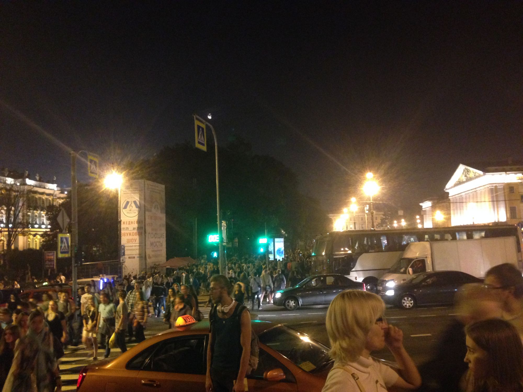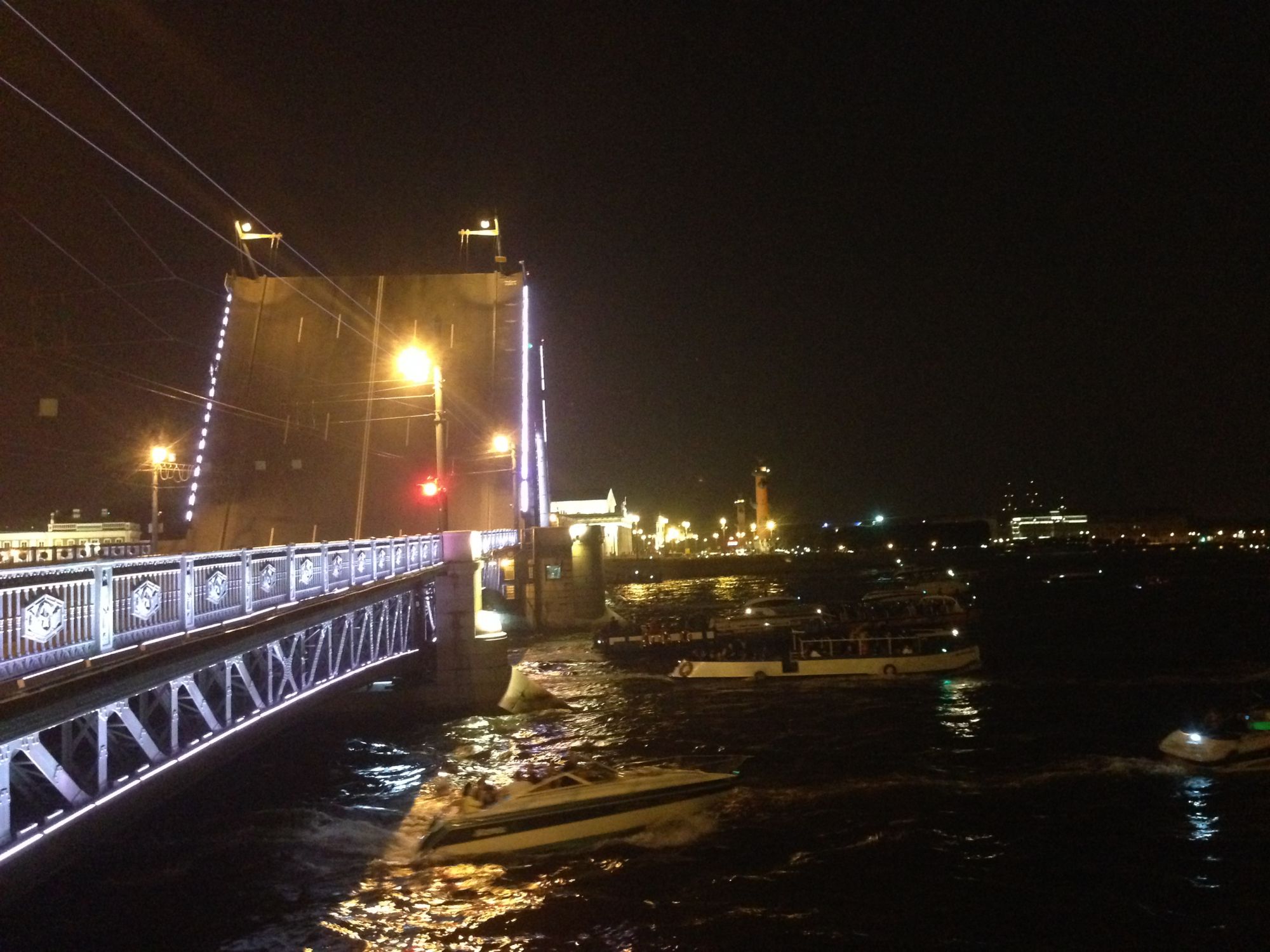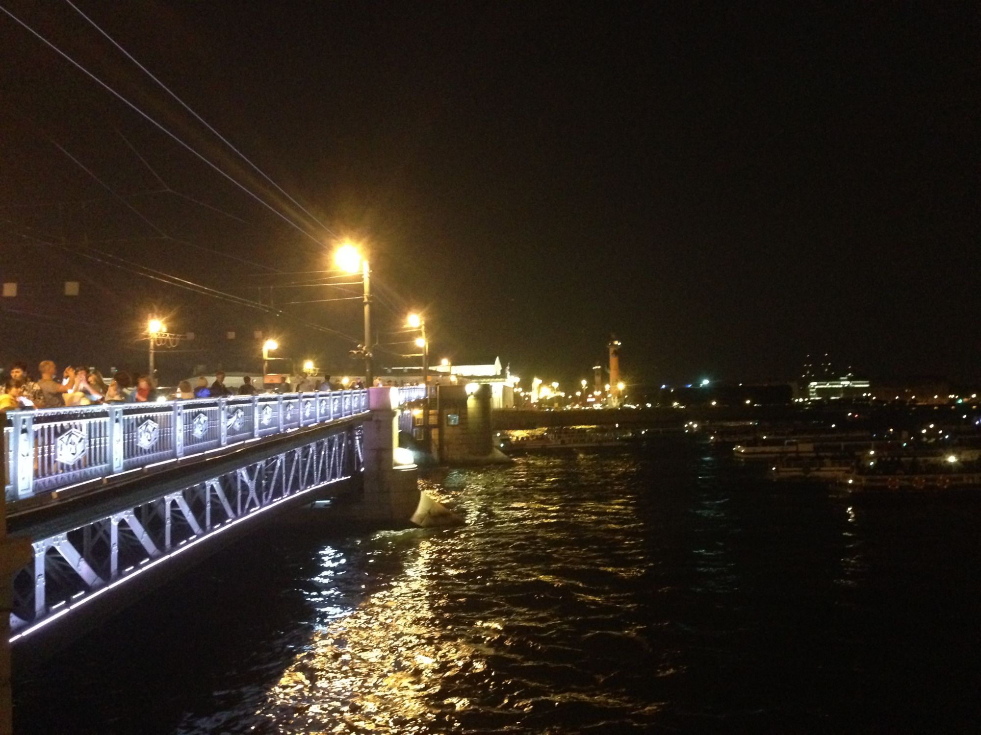 6 августа 2016 Всем привет! Мы дома, долетели благополучно, выспались и встали сегодня в 14ч. По Питерскому очень даже рано, в 9 утра получилось. Вчера вышила 250крестиков к отчету в Долгостроях, а сегодня прстараюсь начать свои кексы. Ну и покажу вам развод моста, как обещалась: Когда мы приехали к мосту, то удивились - как много народа в центре: Потом нам разъяснили: с этой ночи запускается проект Поющие мосты, теперь они будут разводиться под классическую музыку. Вот люди и приехали - послушать, даже питерцы. .. И десятки корабликов тоже ждали начала представления. ..а это - Зимний ночью. IMG_8544.MOV Вот так это выглядело, мы заняли место у подножия моста. Как только музыка началась, и мост немногоподнялся, все речные трамвайчики и катеры пришли в движение, они поплыли дальше, чтобы успеть через 20мин к разводу следующего моста. Я даже не думала, что корабликов в Петербурге так много, они проплывали под мостом непрерывным потоком все 20мин, пока мост разводился. IMG_8546.MOV Так что нам повезло - мы не просто развод моста посмотрели, а оказались на музыкальном представлении! И возвращаясь, прокатились одну остановку на ночном метро - тоже интересно было ехать на совершенно пустом длиннющем эскалаторе. Как будто в каком-то постапокалиптическом фильме, герои идут в опустевшем городе... TanitaK, belyasik, Ксен40 и 7 других сказали спасибо Поделиться сообщением Ссылка на сообщение