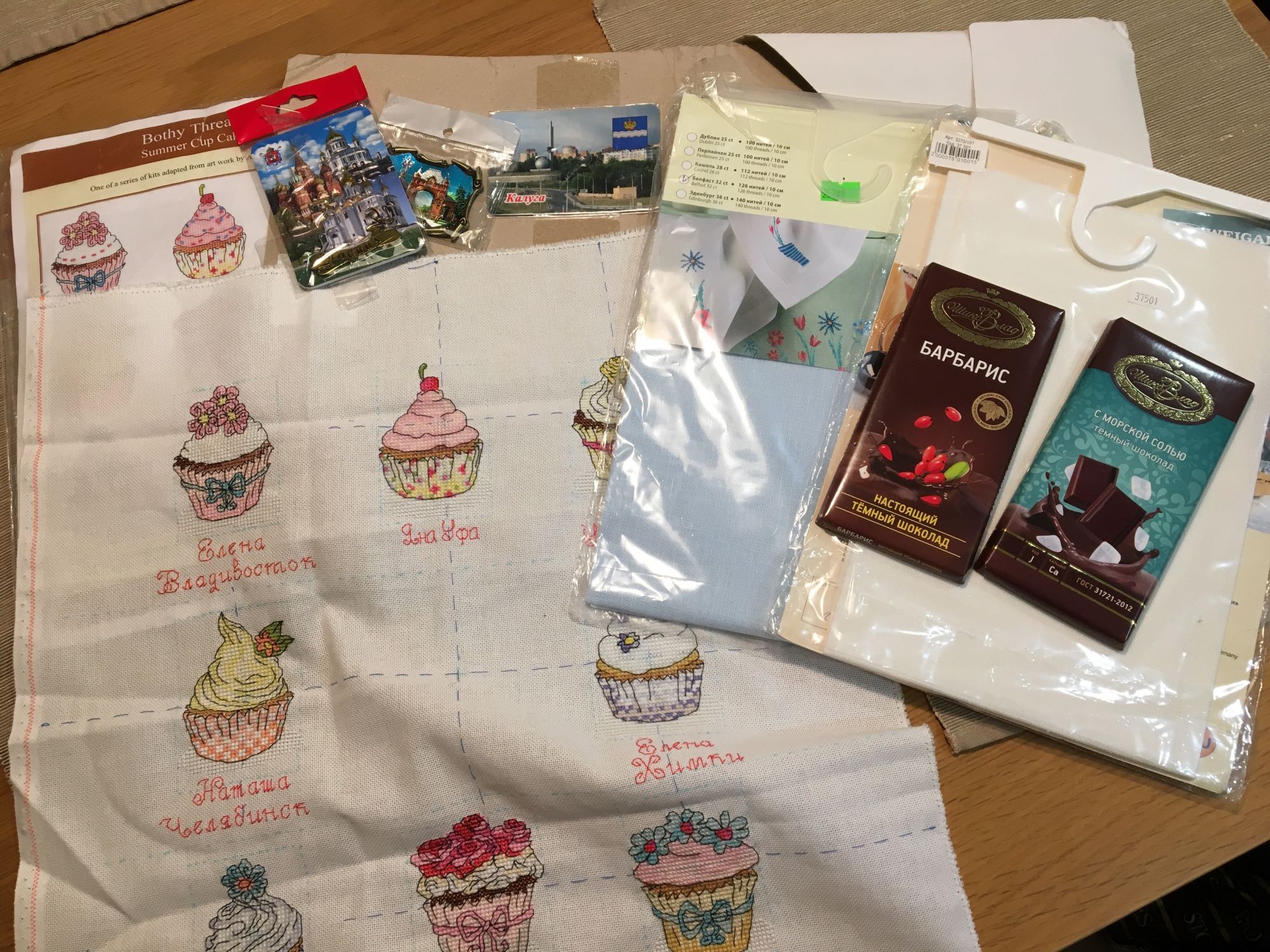 24 февраля 2017 А вот и мой Робин-бобин!! Еле успела разложить все и быстренько сфотать - а то мальчишки мои уже стояли рядом и протягивали "лапы свои загребущие" к шоколадкам! Я потом громко смеялась над их лицами, когда одна из шоколадок оказалась с солью!! Ее мы тоже вчера слопали, на 23фев - прикольная оказалась! В подарочках - равномерка, как я и просила, Мусенька спасибо! Здорово, голубой лен и беленькая равномерка - пойдут в дело! Пироженки вышитые оказались ярче чем я думала, и чем на обложке, а когда бисером сверху разошью будет еще "вкуснее"! У меня уже есть идеи каким шрифтом вышить подпись в центре, и розочками подходящими украсить можно. Прямо во сне на днях приснилось, примерно как это может выглядеть! На след. неделе достану миллиметровку и "начну подумать". Спасибо, девочки, мне очень понравилось с вами вышивать, будет у меня память о моих "вышивальных" подругах - висеть в "моей" главной комнате, на кухне! Я уже и место наметила. ..Наташа-Шерлок, насчет набора из Димшопа это ты верно угадала, я его увела! У меня ведь у самой в загашнике парочка из этого комплекта имеются, и кстати, как раз те кот. у тебя нет! Так что я тоже фанат этих новогодних шариков. Рада что тебе понравились мои новогодние подарочки! Конфеты Байкальский метеорит - наши фирменные, с кедровыми орешками, все из Бурятии такие везут в подарок. И кстати, бурятский новый год - Сагаалган, праздник Белого месяца - мы будем праздновать на днях, 27 февраля. В этом году он поздно получился, аж на 2 месяца позже Нового года. А холодильник твой, Наташ, очень мне напомнил мой, лет 7 назад, когда дети маленькие были. Сверху сплошь магниты (но не так много, на "полдверцы"). А снизу - буквы/алфавит и цифры пластиковые. А еще раньше, до школы, на боковой свободной стенке дети маркерами рисовали и писали, смываемыми. А один маркер, фиолетовый, потом не смылся до конца, зараза. И остались там следы - письмена наших маленьких "пещерных жителей". olnikva, irisheckin, belyasik и 4 других сказали спасибо Поделиться сообщением Ссылка на сообщение