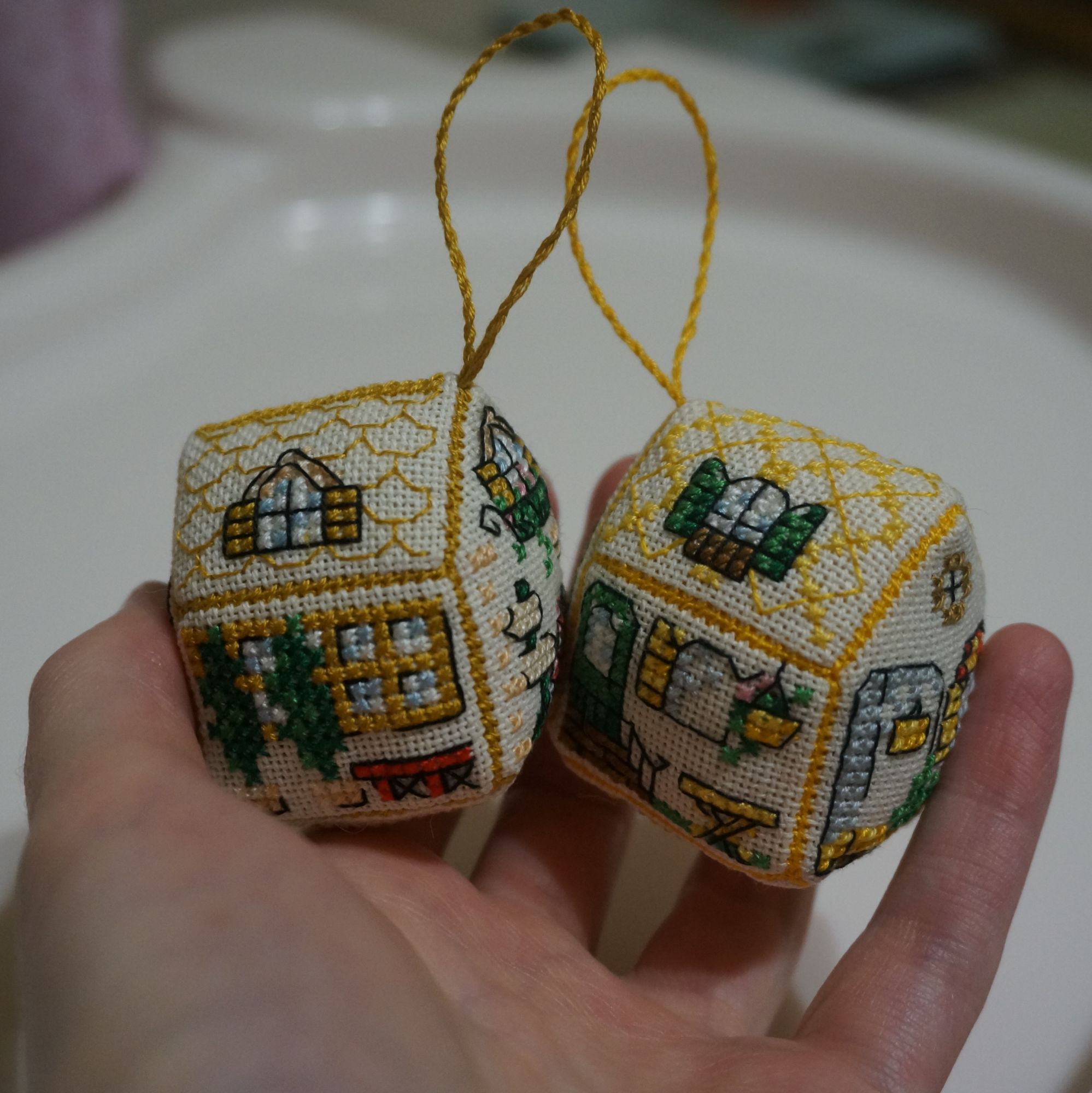 23 декабря 2016 В лавочке 8 дошла моя посылочка для yuss, вот выложу свое фото Домики эти давно захомячила (схемки) и все хотела их сделать, вот и повод нашелся, они могут быть игрушками на елку, могут быть просто интерьерным украшением, или на сумку или еще куда.. в общем, применений много. И процесс сшивания, сшиваются они как бискорню, совсем несложно: А я получила в игре МИНИобмен подарками к Новому Году подарочек от lamina-65, вот похвастаюсь тут тоже: Catopuma, Yulik, yuss и 5 других сказали спасибо Поделиться сообщением Ссылка на сообщение
