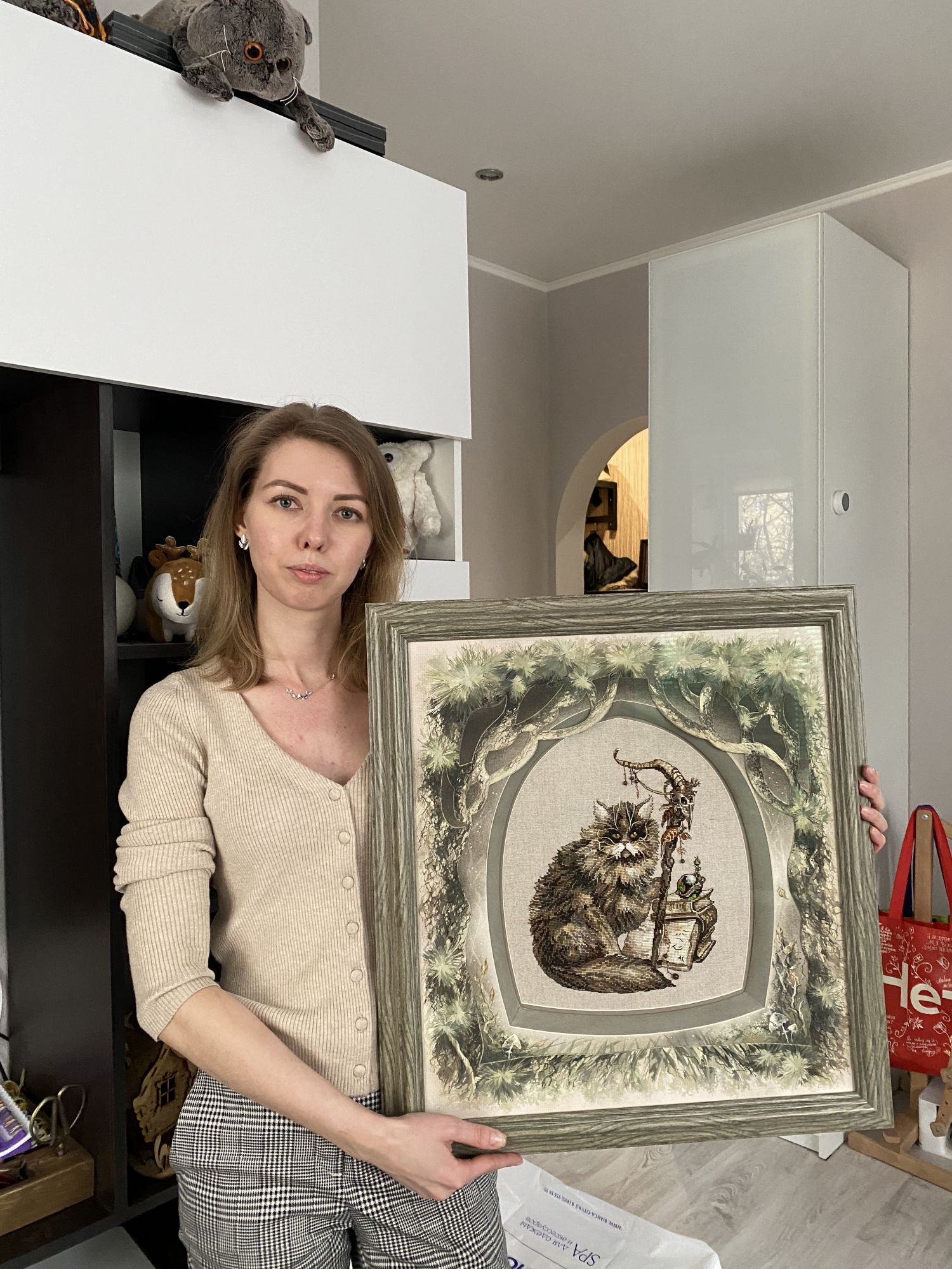 28 февраля 2021 А еще как все знают, сегодня был последний день Формулы рукоделия. Естественно я на неё поехала, но почти ничего не снимали. Нам очень понравилось местоположение, мне так вообще 15 минут от дома ехать. Красота. Да еще и запарковаться было где. Но почитав отзывы о парковке мы приехали ровно к 10 и уже треть парковки было занято. Помещение может и меньше чем в Сокольниках, но за счет высокого потолка дышалось легче. В связи с тем, что не все отечественные компании были на выставке нам удалось больше внимания обратить на другие компании. К нашему удивлению мы нашли офигенного производителя вышивки глади. Нам очень понравилась автор, и как у них подход в наборах сделан. В каждом наборе пошаговая инструкция как шить. В общем взяли с подругой на первый опыт красивущие тюльпаны. Девочки, а какие наборы побольше. Это непередаваемая красота. В общем очень рекомендую присмотреться к производителю Гладкий мир. Я уже года три ищу красивый набор из бисера, который бы меня зацепил. И в этот раз мне удалось это сделать. Покупать не стали, потому что набор был всего лишь один, а нас двое. Но мы его обязательно ухватим. Потому что этот лев очень прекрасен. И мишки с малиной приглянулись: Конечно мы как обычно посетили нашу любимую багетную "Багет-корсет" и я забрала со стенда свою оформленную работу, свою гордость: И да, я осуществила свою мечту сфотографироваться с оформленной работой))) Еще посмотрели отшивы Мережки. Часть работ оказались в жизни мельче, чем мы себе их представляли. Красивые сюжеты, но цена кусается очень. Прошлись по дизайнерам. Подсев на авторские схемы стала чаще заглядывать в этот ряд. А улов вот такой - набор гладью от Гладкого мира, Домик рукодельницы от Ольги Антроповой, корзинка с хлопком от Евгении Полуэктовой. Кусочек мурано ручного окрашивания, и чудесный магнитик с енотом. А наборчик от панны нам подарили чтобы мы попробовали гладь на одежде. Вот такой успешный поход получился на выставку. vasilisa-1977, S4astlivaja, Аринесса и 13 других сказали спасибо Поделиться сообщением Ссылка на сообщение