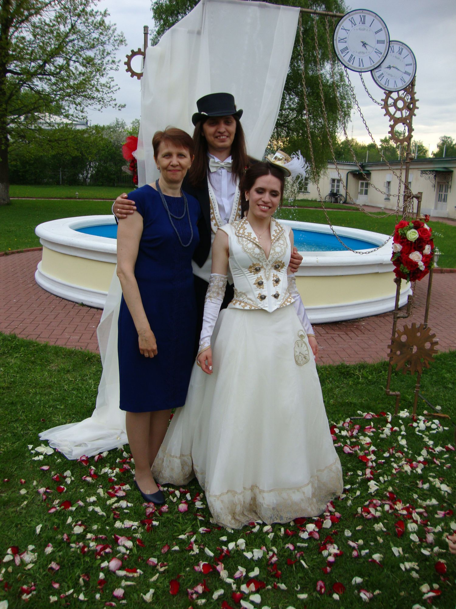 24 мая 2017 Ещё раз всем привет! Я долго обдумывала, как обо всём рассказать, и поняла, что в одном сообщении это сделать совершенно невозможно, слишком много событий и впечатлений, поэтому буду рассказывать частями. Спасибо Москве за прекрасную погоду и за несбывшийся прогноз о сильном похолодании и дожде. Немного холодно было в воскресенье, но к вечеру потеплело, в субботу же погода была сказочная, лучше для свадьбы и пожелать было нельзя. Даже не знаю, с чего начать... Всё прошло хорошо, было весело и необычно, но фотографий у меня мало, потому что на свадьбе было три фотографа, и я решила, что я не сниму лучше, чем они, поэтому не стоит тратить на это время (как раз недавно у кого-то шёл об этом разговор). Свадьба была в стиле "стим-панк", кажется, дети остались довольны тем, что получилось. Сил они, конечно, на это потратили очень много, и на то, чтобы одежда соответствовала, и на то, чтобы отбиться от ненужных предложений агенства, которое пыталось внести в сценарий стандартные пункты типа конкурсов. Начиналось всё на лужайке, где стояла арка и стулья для гостей, а столы были накрыты рядом в помещении. В процессе были перерывы, во время которых все много фотографировались. Молодожены , я с ними с заклеенной ногой , дочка . Были гости в красивых тематических костюмах, были в современных, но украшенных часовыми шестеренками, как у Насти на лацкане. Танцы были необычные, старинные, которым неумеющих обучали в процессе. Не у всех получалось, но было весело . Из нестандартного было еще небольшое, минут на 15, представление с физическими опытами - молниями, зажиганием лампочек без проводов, с замораживанием розы в жидком азоте и т.д. В самом конце, как водится, фейерверк (Оля @ОльгаВл, тебе не было видно ?) Картина моя была вручена, понравилась, повезется в Цюрих в следующий заход, пока сын поехал один, сразу всё забрать не смог, будет делать документы, необходимые для юлиного переезда. 10 часов назад, olnikva сказал: званием "свекрови". Как тебе в этом статусе? К сожалению, очень мало было времени на общение, дети были в бесконечных хлопотах, им нужно было то туда, то сюда, я их видела в четверг часа два, да и то не наедине, а мой муж Юлю первый раз увидел уже на свадьбе, и с её родителями мы познакомились там же. В воскресенье молодёжь полдня отсыпалась, а потом веселилась своей компанией, мы им не мешали, потому что они тоже съехались на свадьбу из самых разных мест, поэтому муж с родственниками ходили в Кремль и Оружейную палату, а я ездила в гости к Юле @apanjul (но об этом позже). Так что свекровью почувствовать себя пока не было возможности, буду ждать, когда дети приедут к нам в гости. Lelchik, АлёNка, makalicha1970 и 37 других сказали спасибо Поделиться сообщением Ссылка на сообщение