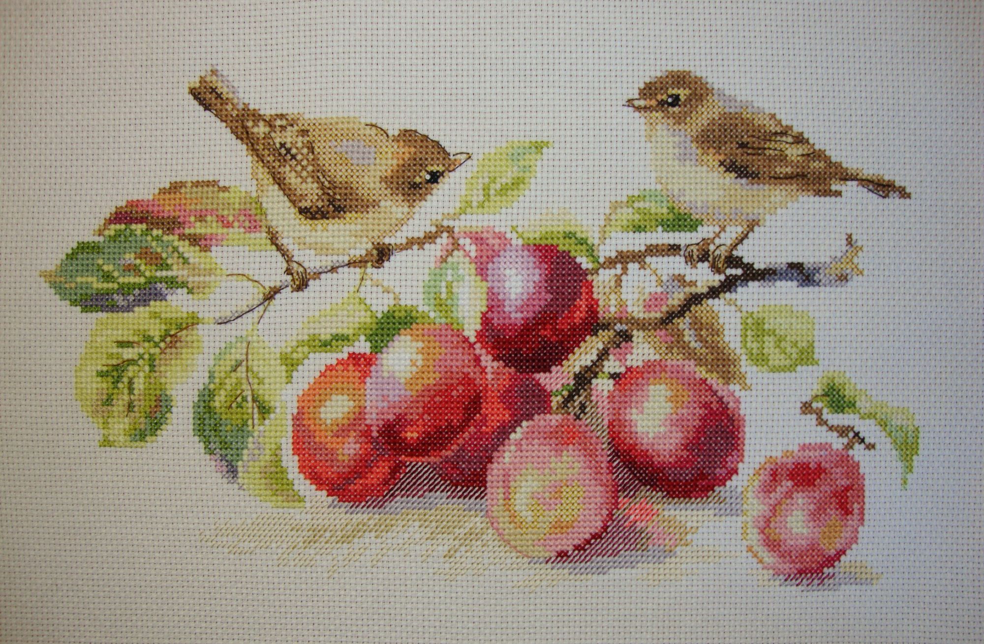 31 мая 2017 В 28.05.2017 at 13:16, ЛюдмилаЕр сказал: Вот и готовы мои пеночки! Людочка, поздравляю с завершением!!! Если бы не был написан производитель, мне почему-то напоминает стиль Lanarte. И по цветовой гамме тоже. Пеночки хорошенькие и ягодки тоже!!! Крестики... Ах!!!!Мне остаётся только взять носовой платочек и всплакнуть .. хотя, нет, целое море слёз будет.. Вышиваю первый Дим на 18 родной канве. Ну, вышивала же я лукасовский натюрморт на 18-ой крестиком в 2 нити и всё нормально было, а здесь немного напрягают полукрестики в 4 нити, а вот в 5..... вообще обнять и плакать, Я их сначала по нескольку раз распускала, читала в темах дима , что пишут девочки, рассмотрела все процессы этой вышивки. У меня 5 ниток еле заталкиваются на своё место, поправляю, и укладываю их, но... "горбатые" какие-то получаются, хотя со стороны, конечно не видно. Перепробовала и 26 иглами острыми и закруглёными, и 24, в общем их шью № 24 , аж вздыхала, когда переходила на 4 и 3 нити. А там ещё и в 6 нитей полукрестики есть, я пока не дошла до них... Радует, что хоть картинка яркая, красивая. Людочка, твои крестики мне - как бальзам на душу!)) nogres, irisheckin, АриЯ и 9 других сказали спасибо Поделиться сообщением Ссылка на сообщение