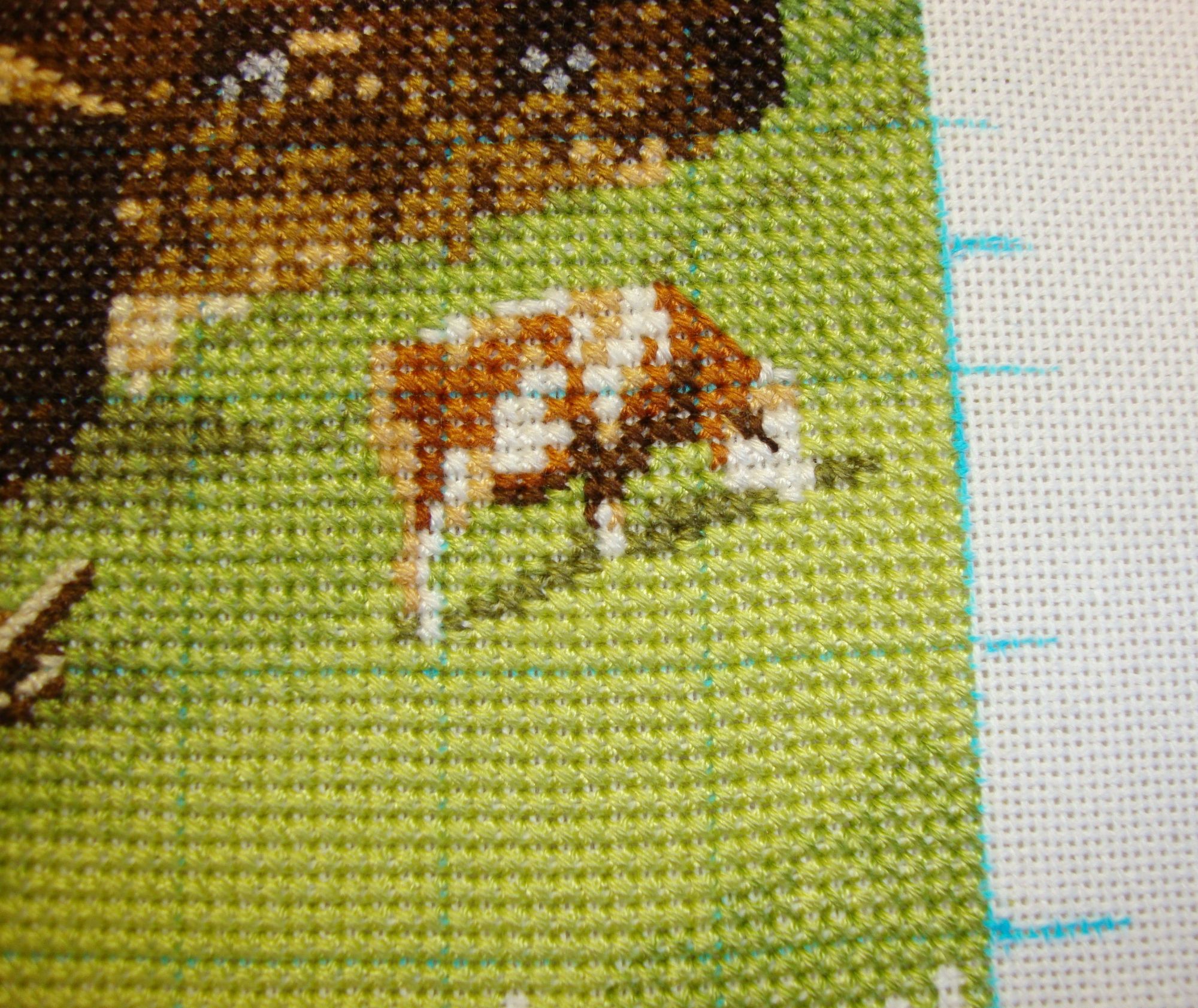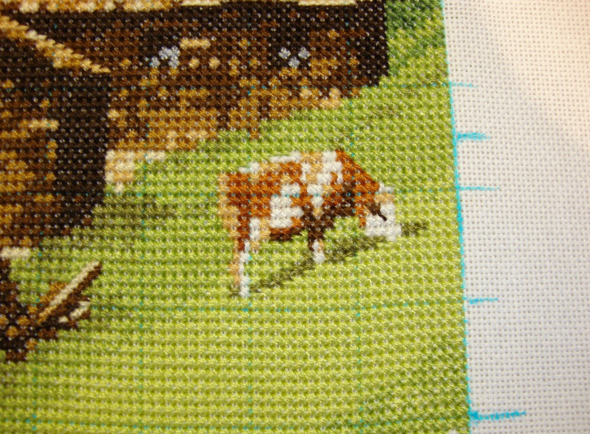 10 августа 2017 Меж тем, ни шатко, ни валко, панелька подрастает... Куча дров перед сараем на данный момент оказалась для меня самой сложной из вышитого здесь. Не везде аккуратно получились узко- и 3/4-крестики, некоторые переделывала, это не помогло, на том я и успокоилась))))) Было , стало , и во всей красе))) , и ещё дрова и корова . Зацените чудесный лужок ниже коровы, который вышивается одним цветом, и это даже не бленд - есть, где передохнуть перед второй коровой и кустом . Чуть не забыла - у коровы "выпрямила" холку, а то она была ступеньками, те кто вышивал, могут сравнить. Мне так больше нравится. АлёNка, nogres, Sky026 и 34 других сказали спасибо Поделиться сообщением Ссылка на сообщение