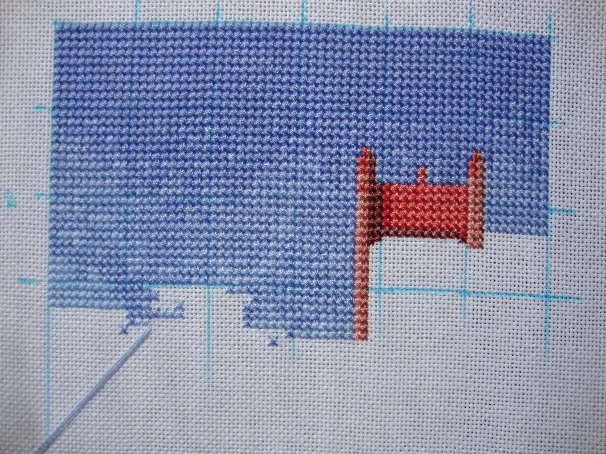 22 апреля 2018 Мини-отчет. Мост Золотые ворота, было , стало . Деталей пока немного, только бесконечное небо и красные опоры . Небо, в принципе, вышивать люблю, но тут немного скучновато идет. Вышивается оно тремя чистыми цветами и тремя блэндами. До последнего блэнда я ещё не дошла. И пара фото с улицы, вот такая у нас уже зелень , небольшой куст глицинии . TheSunniestDay, Мультифрукт, Наталья2013 и 29 других сказали спасибо Поделиться сообщением Ссылка на сообщение