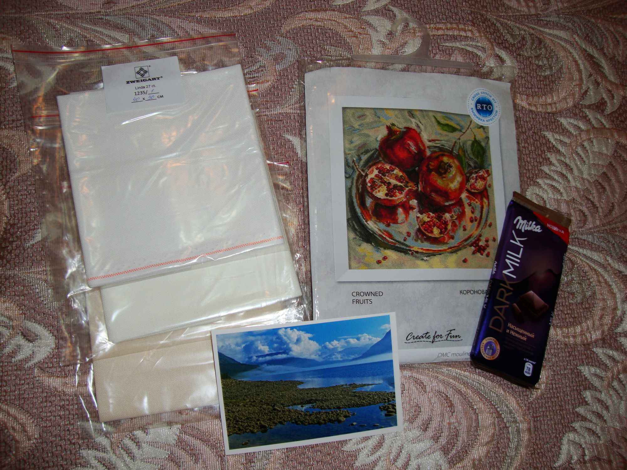 27 августа 2018 Девочки дорогие, спасибо всем за поддержку! Конечно, не хотела вас так сильно расстраивать, но и промолчать не могла. Но есть и приятные события - в августе получила две посылочки от двух Оль . Первая - от Оли @оленек74 . Затевалось всё ради очень ценного для меня подарка - остатков оригинальной клейтоновской панельки (очень люблю вышивать по самым что ни на есть родным схемам, а Оля щедро со мной делится ). Но Оля была бы не Оля, если бы не добавила к остаткам других приятностей - кулинарный журнал, шоколадку (которая до фотосессии не дожила), а ещё целый набор с китайской репликой известного Залива Гумбольдта, и ещё канву к нему. Олечка, большущее спасибо! Обнимаю тебя крепко-крепко! Вторая посылка - первая выигранная мной на форуме "конфетка" от Оли @МамаЛё. В результате это не конфетка, а КОНФЕТИЩА! Сам набор - РТОшный натюрморт с гранатами , а к нему шикарное добавление в виде трех отрезов горячо мною любимой цвейгартовской линды трех оттенков и две шоколадки (одна оказалась съедена быстрее, чем я всё сфотографировала ), вот так . Олечка, спасибо огромное , у тебя столько хлопот с детьми, а ты успеваешь и нас порадовать! Дорогие Олечки, отдельное спасибо за открытки с теплыми словами, они очень помогают в грустные дни моей жизни! Но негоже только получать подарки, поэтому в скором времени (если получится, то в конце недели) тоже предложу своим гостям несколько конфеток, так что заглядывайте! АлёNка, makalicha1970, ОльгаТольна и 39 других сказали спасибо Поделиться сообщением Ссылка на сообщение
