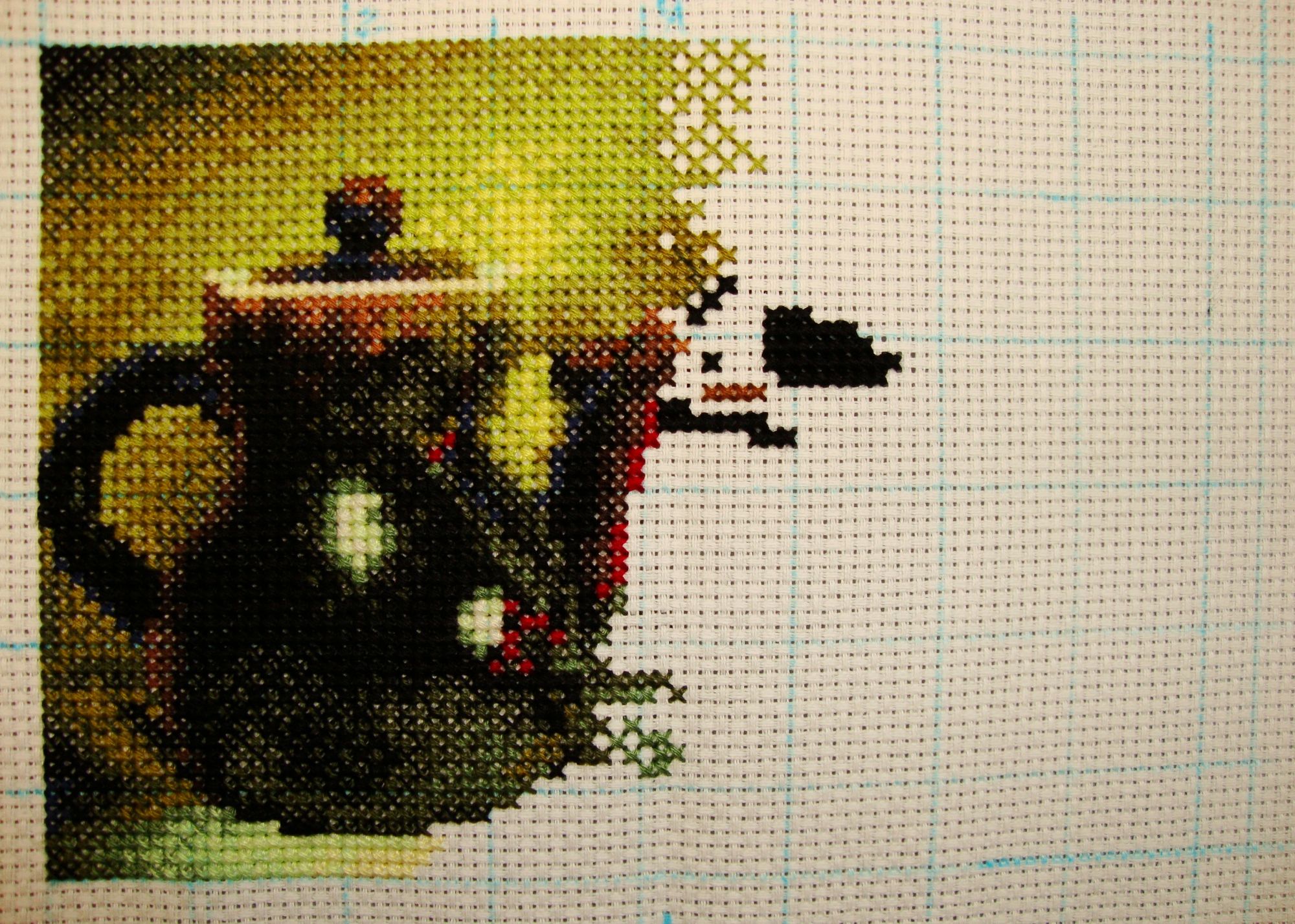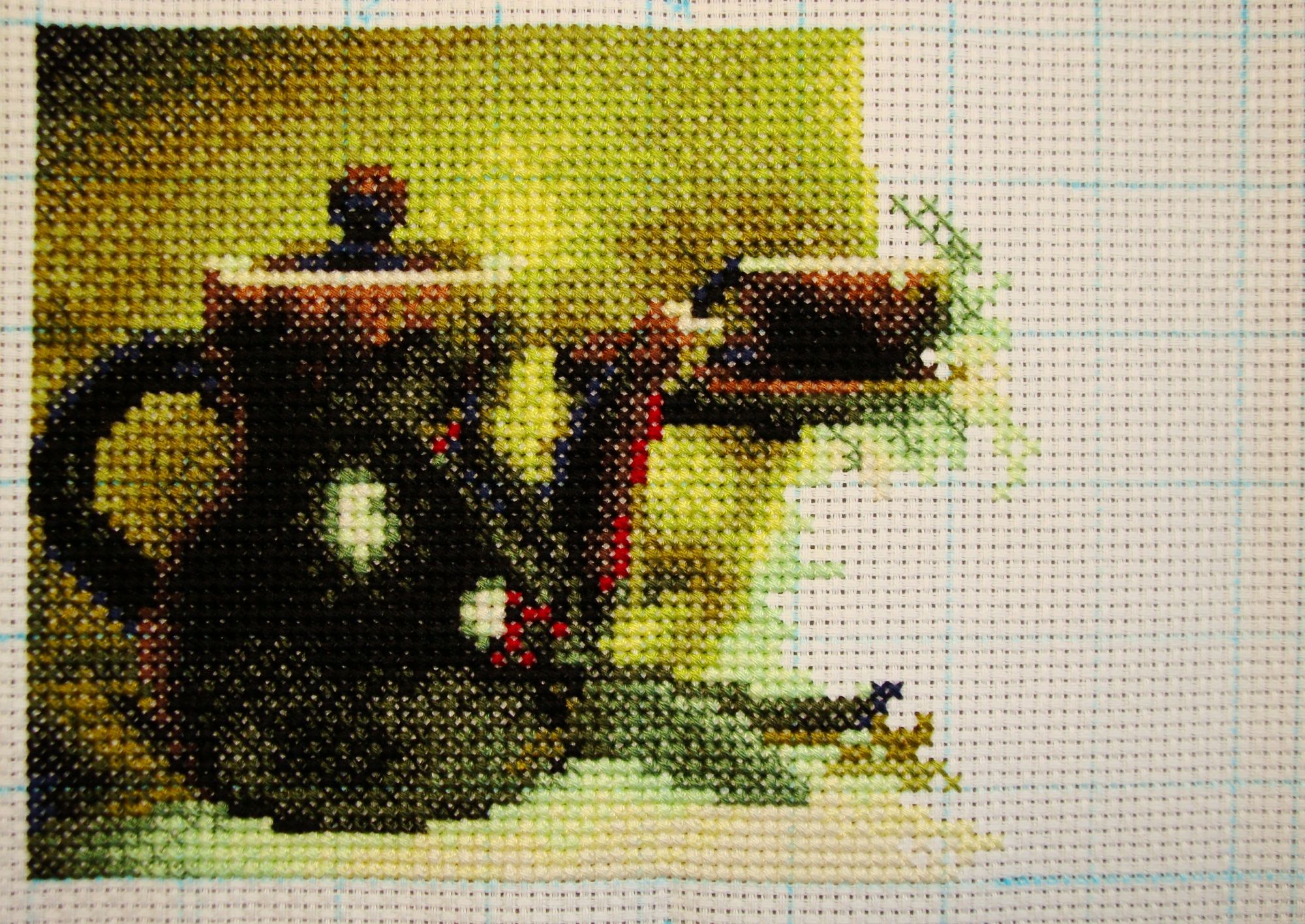 13 октября 2018 Пришла "сдаваться" . Для начала покажу оформленную Альгамбру, которую уже кто-то мог видеть в Галерее. Оформление такое же, как у остальных панелек. И все вместе. Ставила их то так, то этак, фотографировала со вспышкой и без, сделала штук 50 снимков - толку мало. Теперь думаю, как бы для конкурса фотографии поприличней сделать. Ещё оформила вкусную парочку, но тут рамы нужно доводить до ума. Пока повесила так. Рамы слишком светлые, но, как обычно, того багета, который подходил лучше, в наличии нет и не будет. Багет не гладкий, а с эффектом брашированной древесины , так вот есть у меня мысль немного его затонировать, чтобы выступающие части были потемнее. Нужно купить краску и попробовать, ну, а если ничего не выйдет, идти переделывать в другую багетку. И о процессах - нужно уже в гайку красненького добавить, а то она уже неделю совершенно зеленая ... Начала я натюрморт с гранатами, вышила сотню крестиков и решила разметить канву для дорожного процесса, который планировала вышить до конца года в поездках к родителям. Ну-ну, разметила... Panna Н-460 Натюрморт с цветком, 15х10 см, 24 цвета, счетный крест Процесс хоть и небольшой, но мне показался самым сложным из трех. 24 чистых цвета и 4 бленда, очень подойдет для любителей шахматки, особенно шахматки блендами. Черный цвет вышивается в 3 нитки, благодаря этому на чайничке получается черное пятно почти без просветов, смотрится очень здорово. Несмотря на то, что цвета здесь не такие яркие, как в первых двух натюрмортах, результат очень хорош. Теперь и эта серия у меня закончена , осталась незавершенной только собачья, можно с чистой совестью вышивать натюрморт. Итак, конфетка от Оли @МамаЛё RTO M598, Коронованные плоды, 35х35 см, аида 14, счетный крест. Для меня немного неожиданным стало, что в наборе 14-я канва, я подумала-подумала, и заменила её на 16-ю, а то больно уж размер был большим. Теперь он станет примерно 30,5*30,5. Первые 300 крестиков . Тут быстрого результата не ждите, пока много-много фона, а до яркого дойду не скоро, тем более, что я внезапно решила ехать в Москву, так что через 5 дней лечу проведать дочку. Москвички, придержите там для меня хорошую погоду, пожалуйста))) Всем привет и успешного участия в конкурсе! Nadinka-Blondinka, Океан, Наталья2013 и 37 других сказали спасибо Поделиться сообщением Ссылка на сообщение