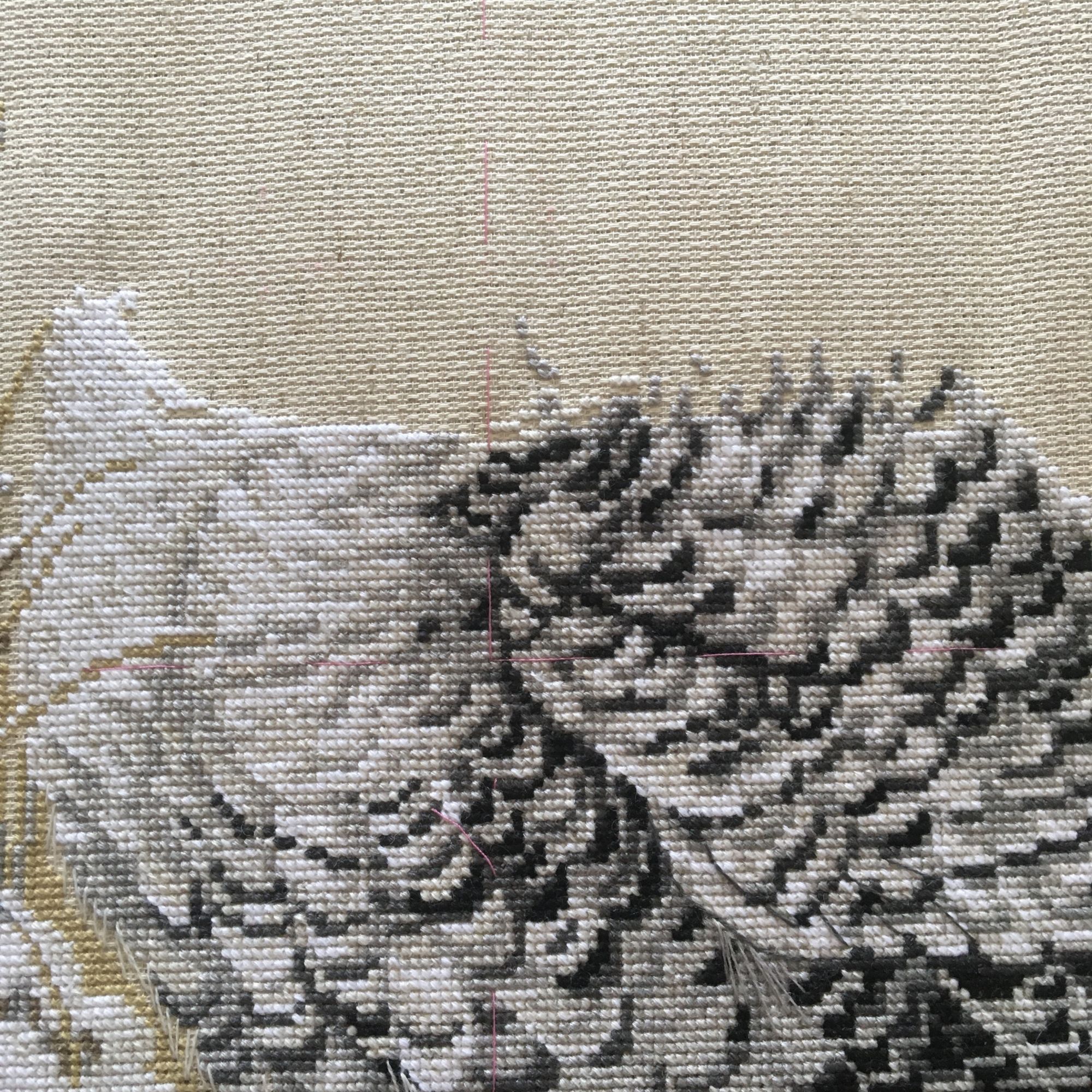 Я с новым процессом. Начала третью подушку из своих раритетных подушек от Риолис