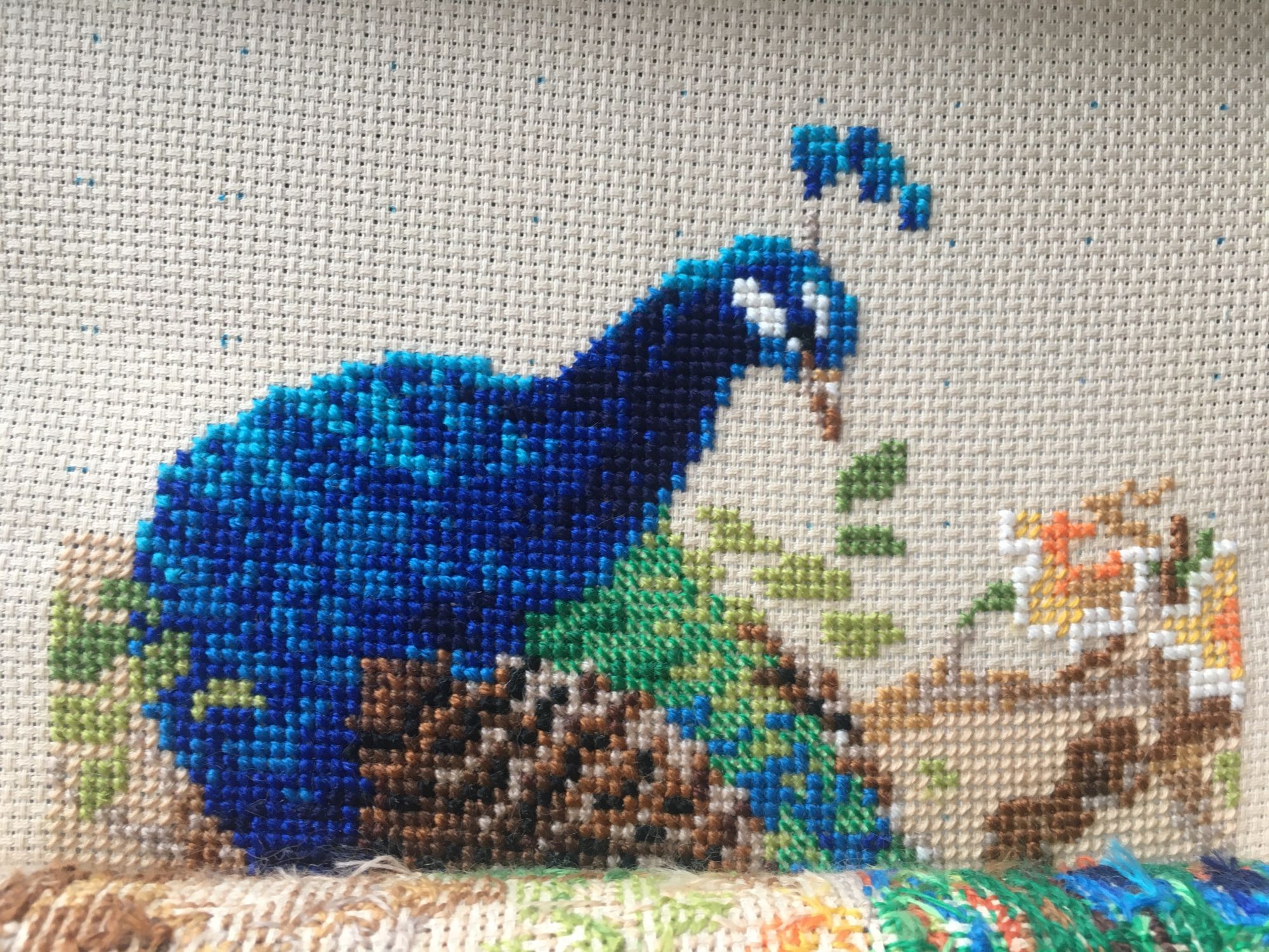 Очень надолго забросила свой проект, но все-таки вернулась с твёрдым намерением закончить. Наделала очень много ошибок. После отшива оленя у меня не сходился фон внизу картины. Где накосячила, я так и не нашла. В итоге включила фантазию и с горем пополам довышила низ. Расстроилась, но олень был полностью готов и бросать работу из-за фона было жалко.