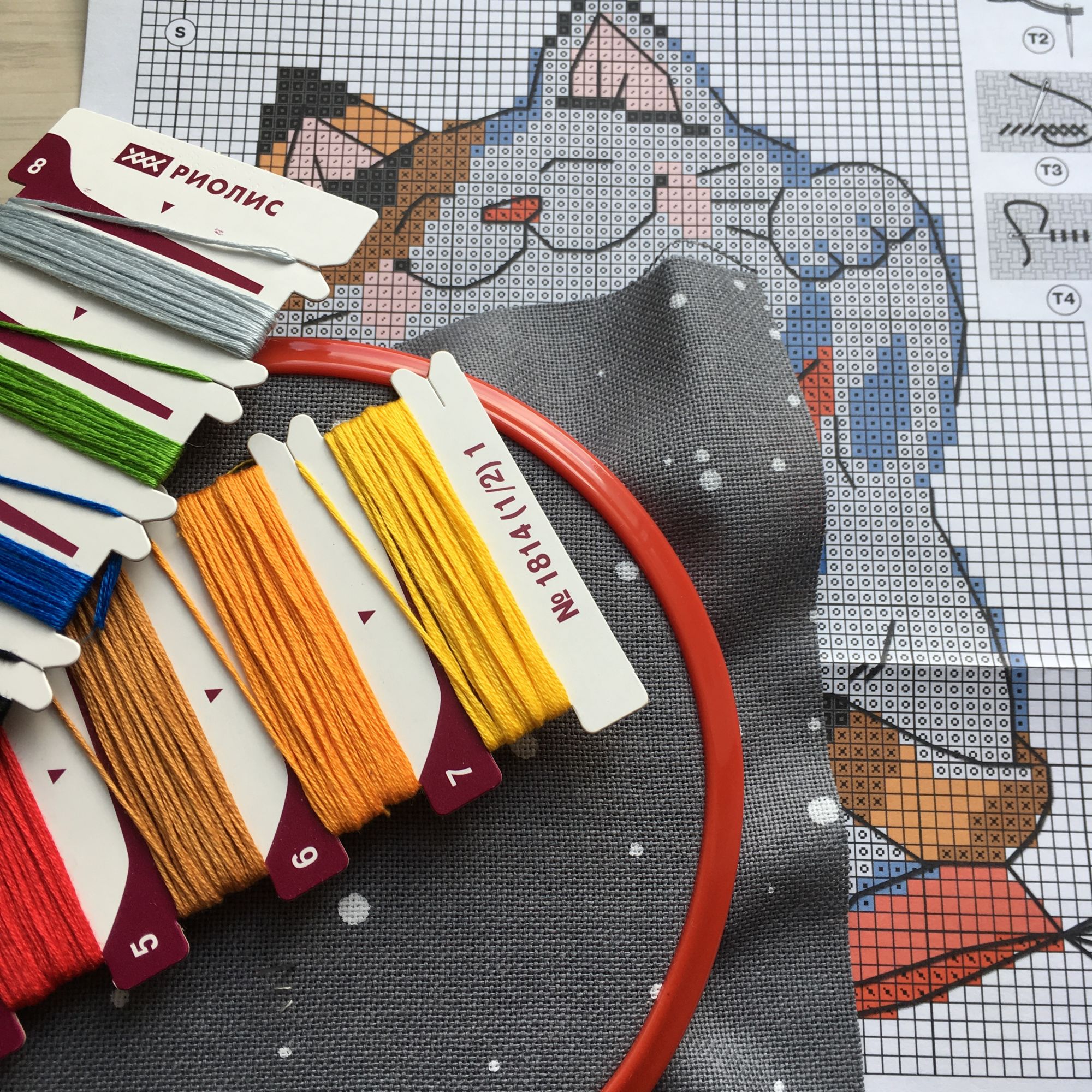 Очень давно не шила наборы, а ради Лавра решила изменить авторским схемам. Все так необычно - и нитки непривычные, и схема бумажная, и шить полукрестом. Прям новый дивный мир)
