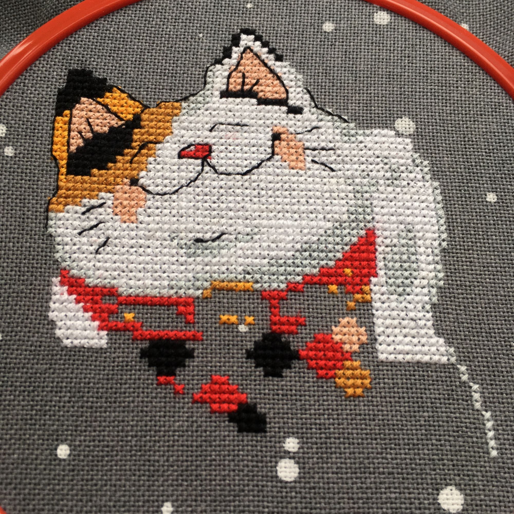 Это любимый Риолис, японская кошка манэки-нэко, приманивающая лапкой счастье и удачу ^__^  Канву заменила на мурано 32 на фото результат за сегодня