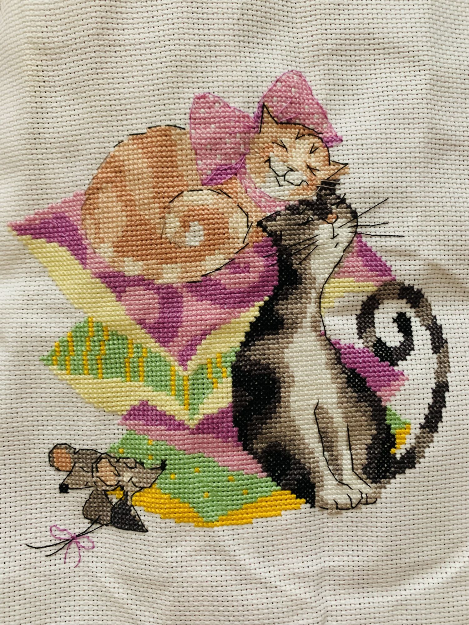 Очень хотела начать этот набор, и в целом там большие блоки одного цвета, нет таких проблем с постоянной сменой нити как в Панне. После Чертополоха вообще релакс. Так бонусом еще и нити режу под удобную длину, что также увеличивает скорость.