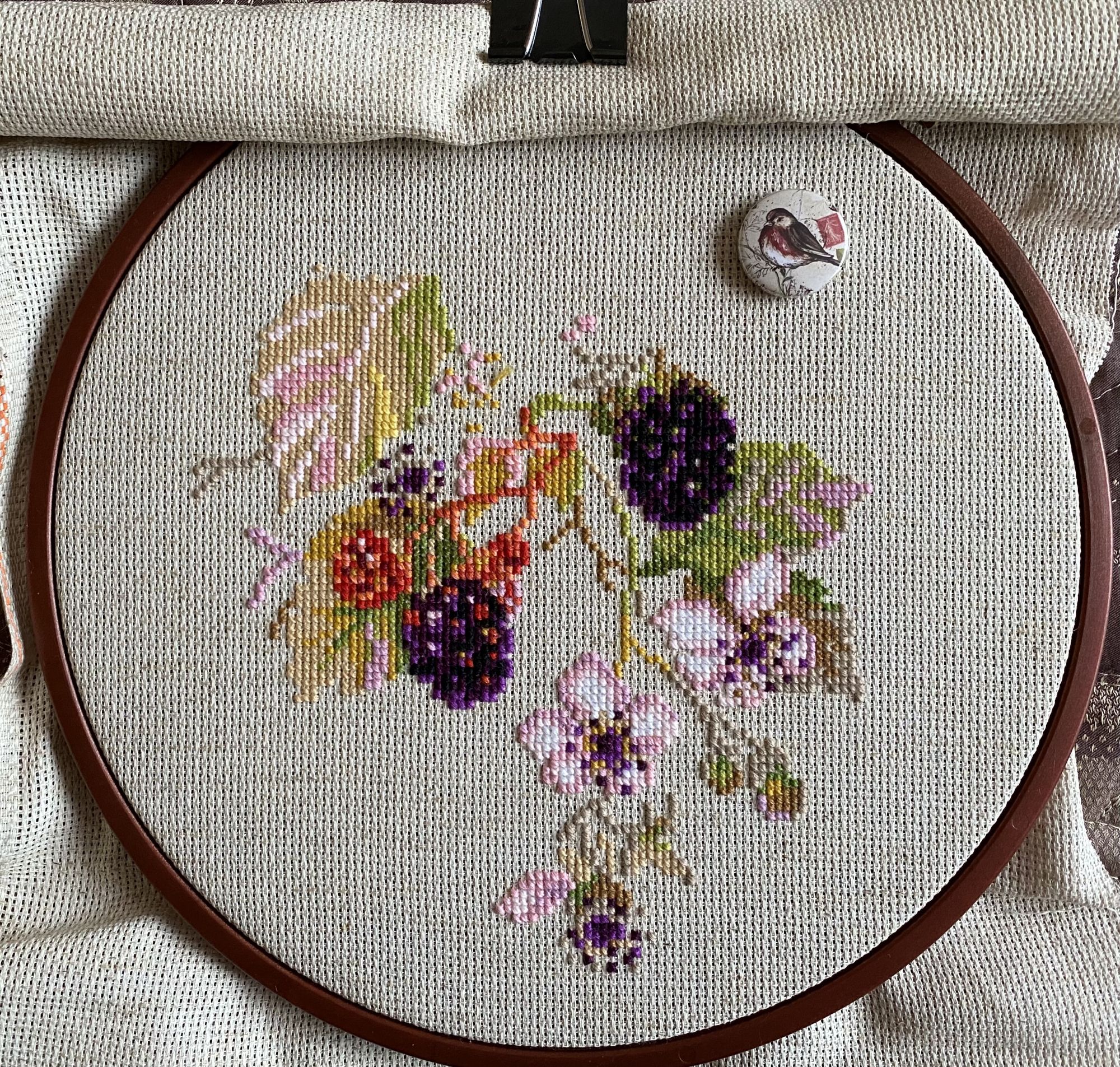 Ну а я наконец добралась до ежевики, дошила все свои основные процессы (не считая подушки, к ней руки по прежнему не тянутся <_< ), сняла со станка риолис  и принялась судорожно вышивать, соскучилась, видимо