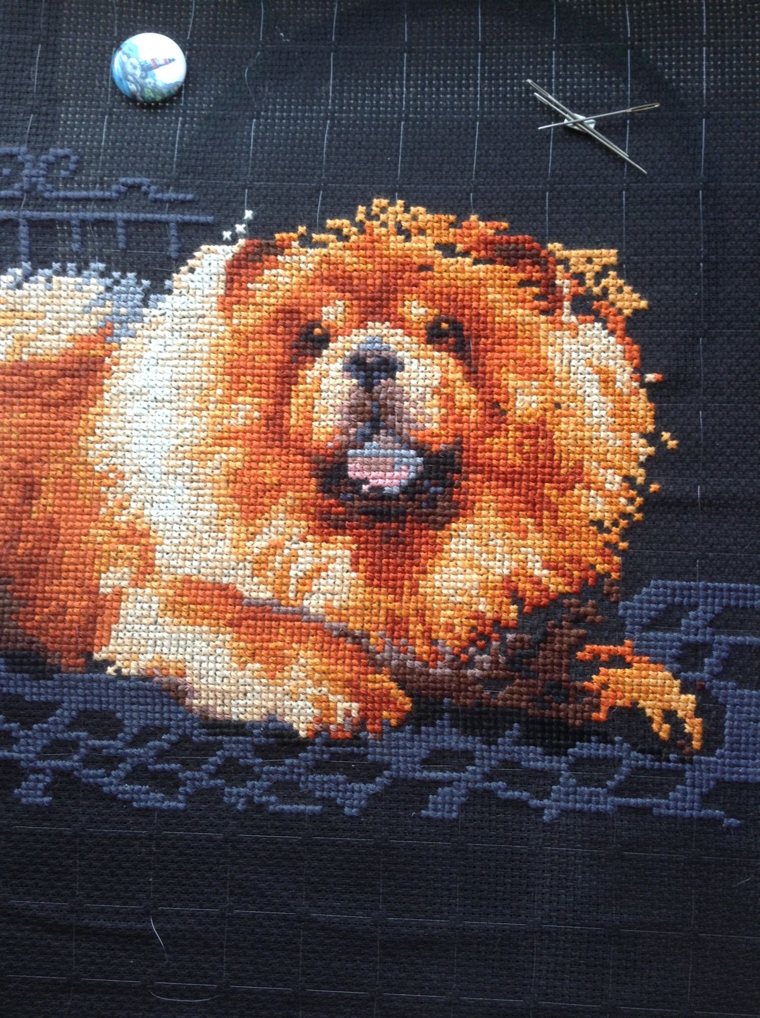 Оформился мой пёсик. Будет подарен на НГ друзьям, владельцам чау чау. Вышитый ну очень похож на оригинал.