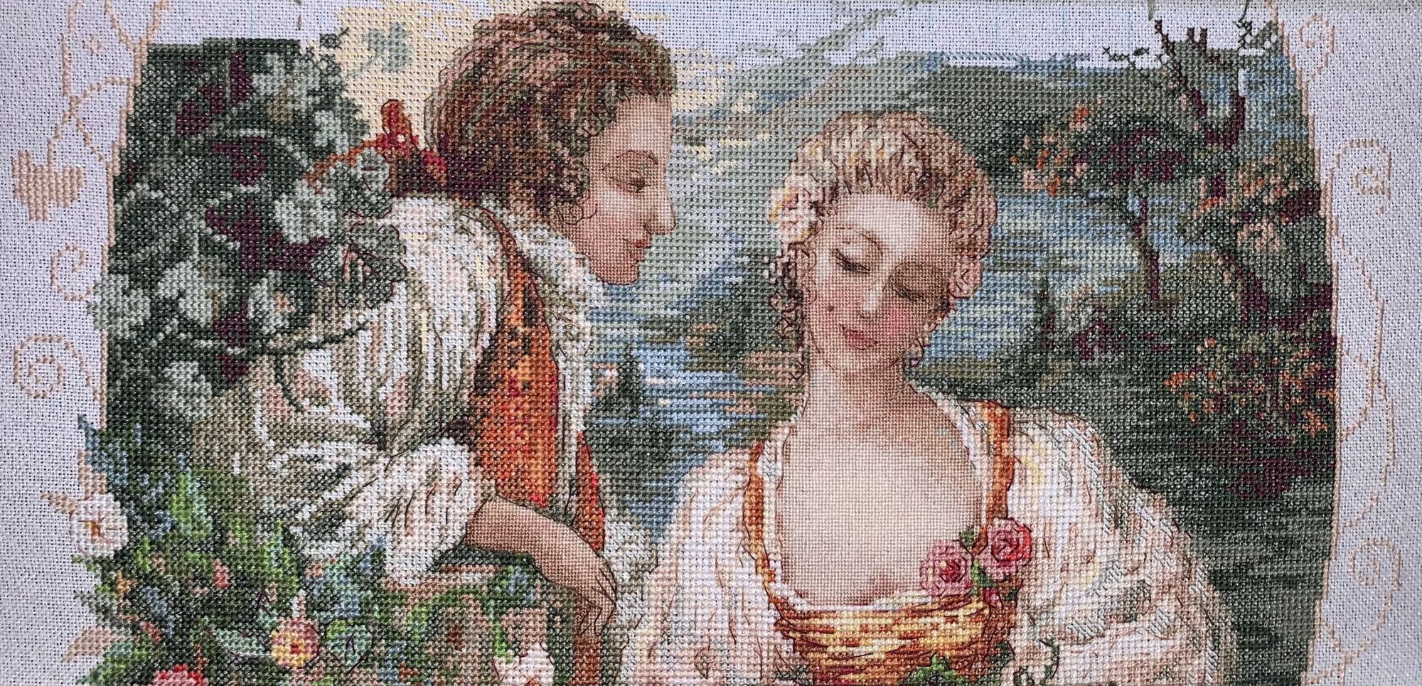 Да, вышивала на канве, в одну нить. Тоже красиво и нежно получилось. А цвета такие и есть, что на фото.