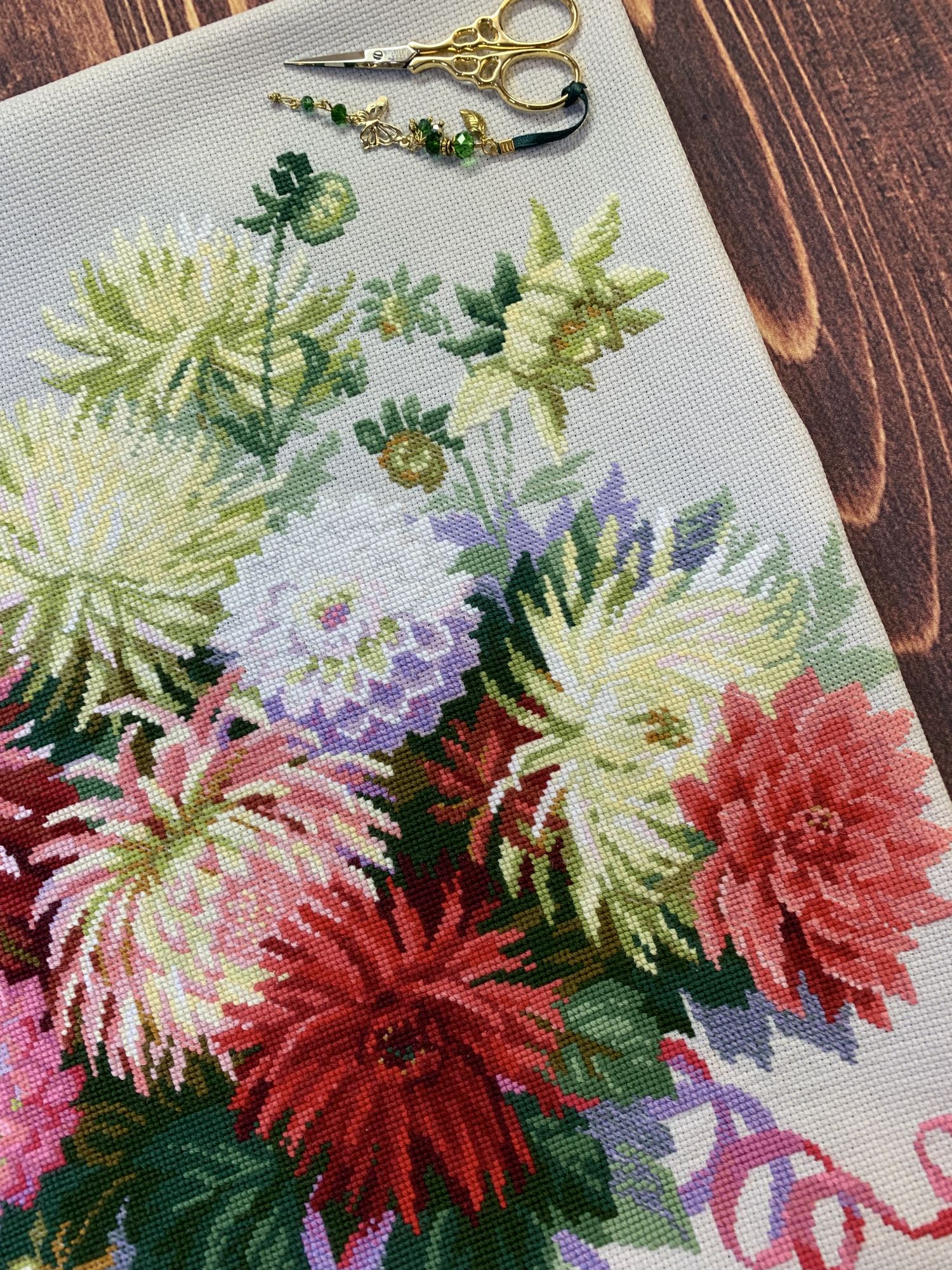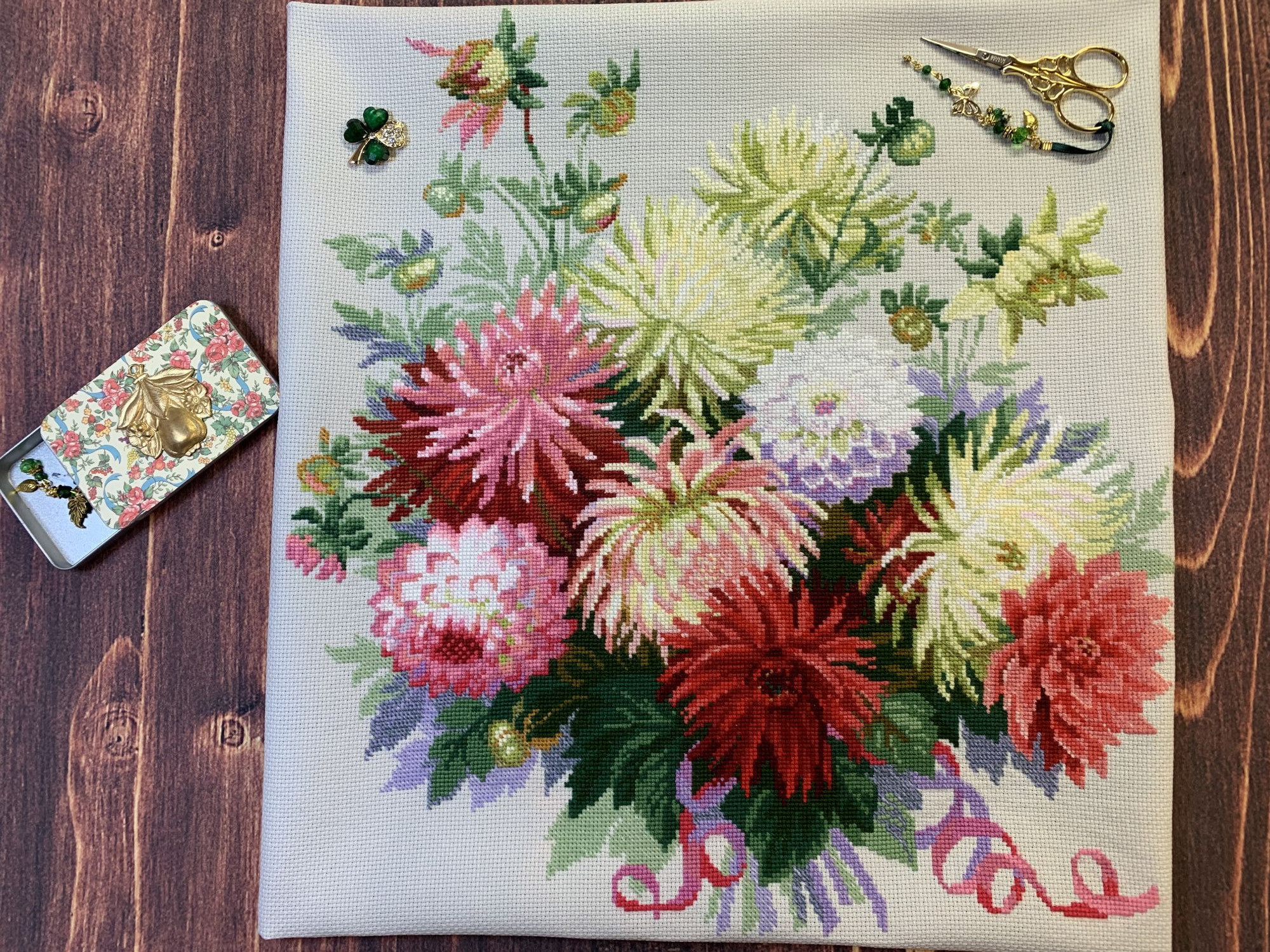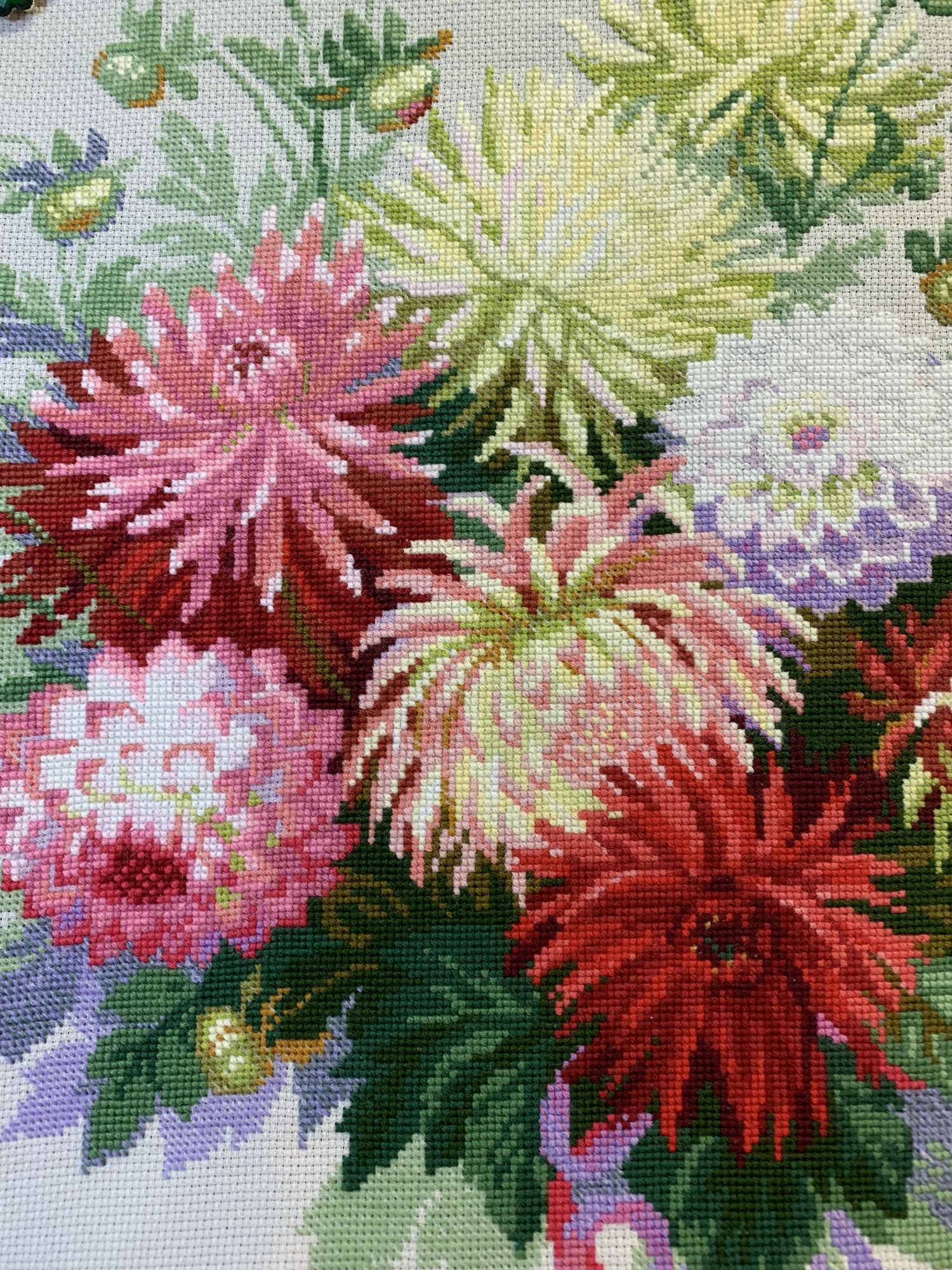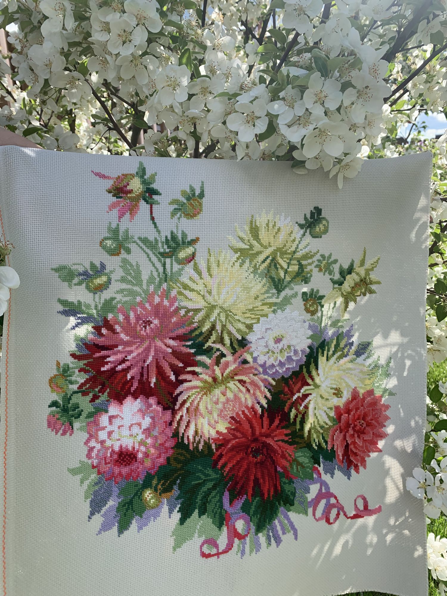 Показывала в этой теме отшив георгинов, последний раз аж 13 февраля, а финал так и не продемонстрировала. Исправляюсь. Вот так выглядят георгины в законченном виде (фото НЕ в гаечку):