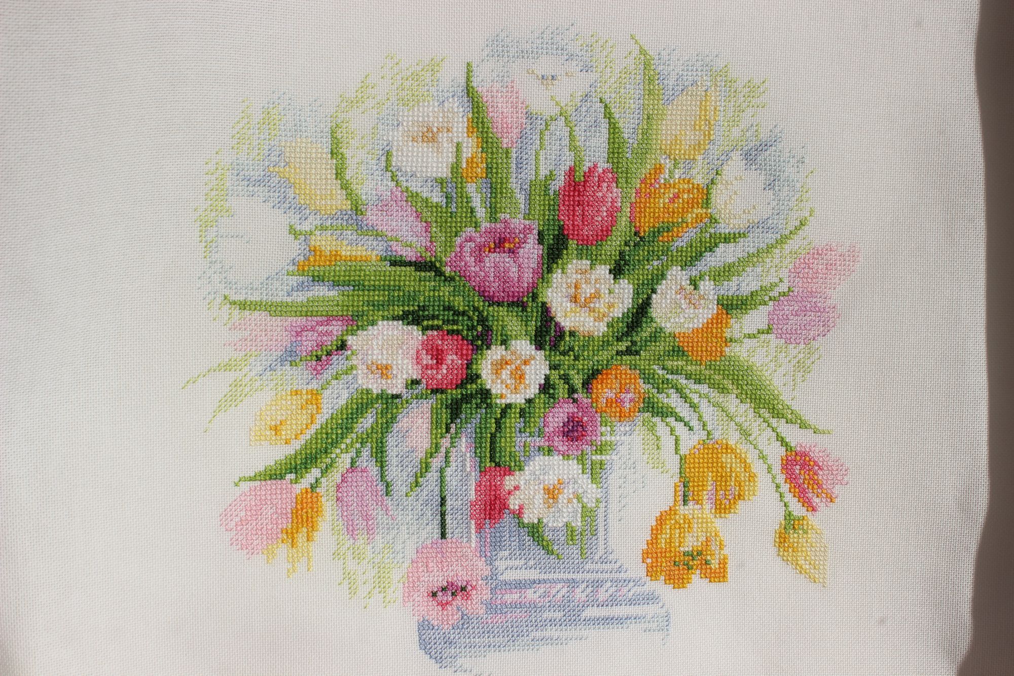Я всю, наверно, не хочу, но часть точно буду. Пока вот вышила флоксы и тюльпаны. Хочу к ним какую-то третью работу из серии, чтобы как-то подошла к ним в цвет. Но не знаю пока, какую именно. Розы, чтобы розовый во всех трех подчеркнуть? Жасмин - скрепить все нейтрально белым? Или подсолнухи  - третья по- своему яркая будет.
