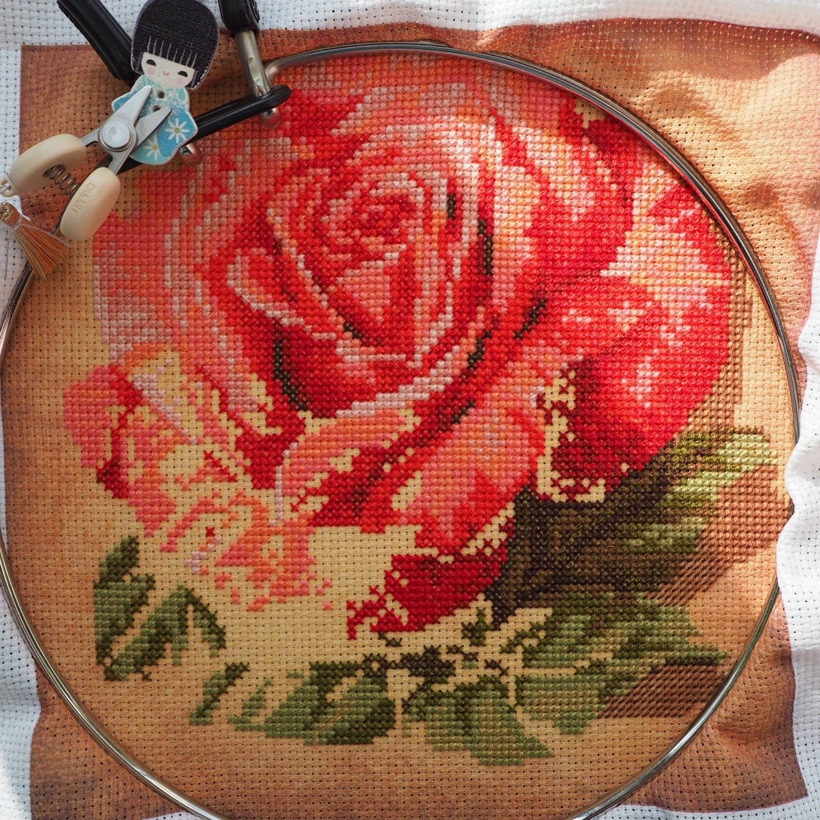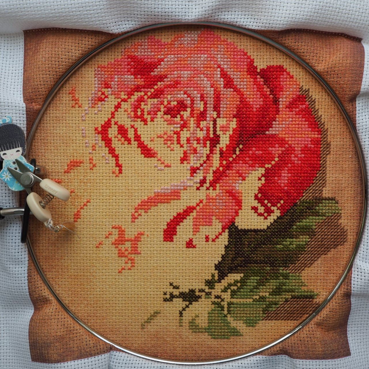 Всем привет! Так как месяц стартов уже закончился, приду сюда с новым процессом. Это  из серии «увидел и пропал»!! При том, что я терпеть не могу принтованную аиду, да еще 14 каунта, накрыла меня эта роза так, что аж снилась, пока на озоне ехала :wub: