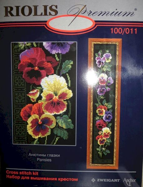 Всем здравствуйте! Начала набор из серии Риолис Премиум, Анютины глазки. Люблю вышивать на черной канве, тем более у Риолис много достойных внимания наборов на ней.