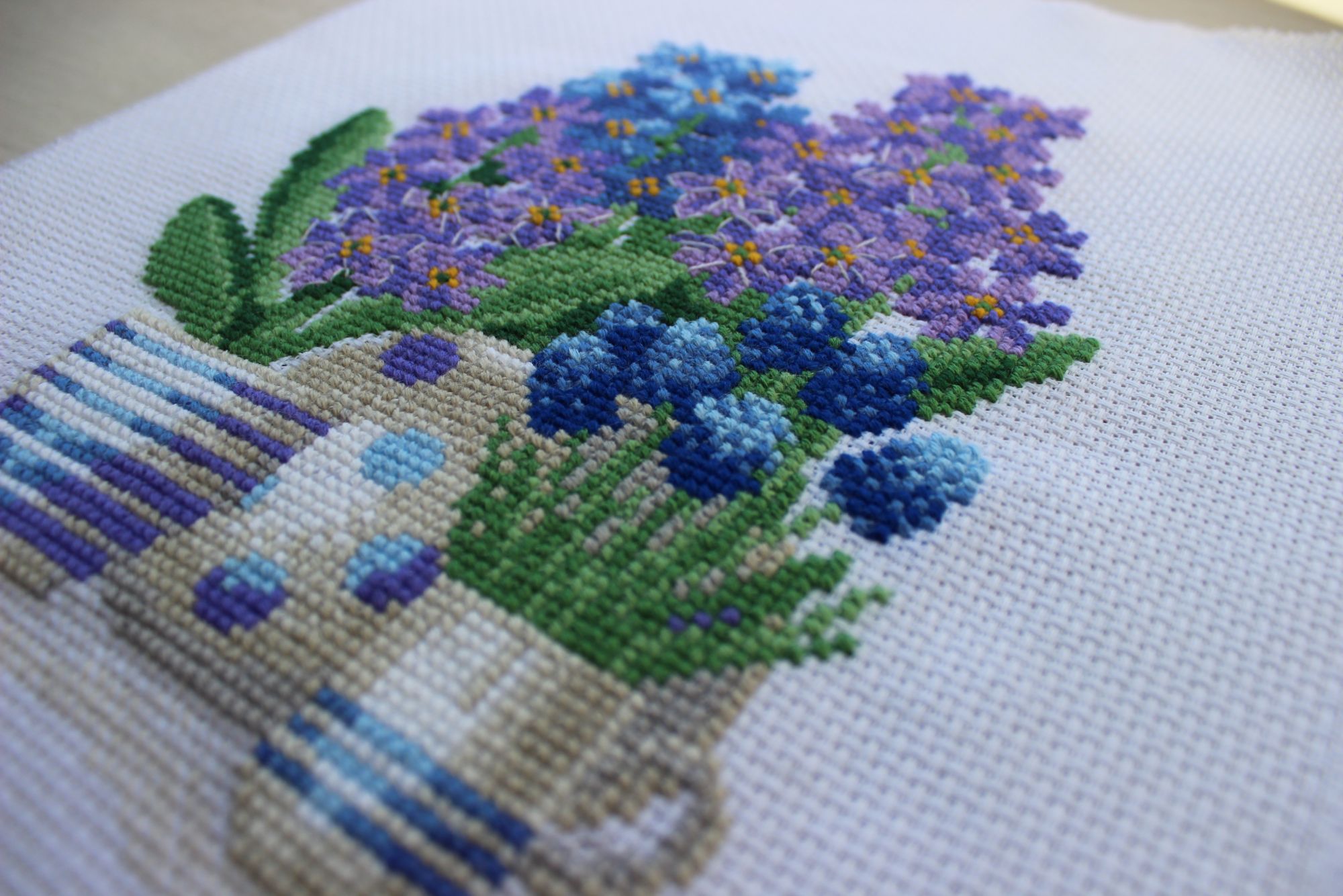 Татьяна, и мне тоже очень интересно было посмотреть процесс вышивки гиацинтов. Такие яркие и сочные цвета, приятная цветовая гамма. А какая будет третья работа в этом  трио?