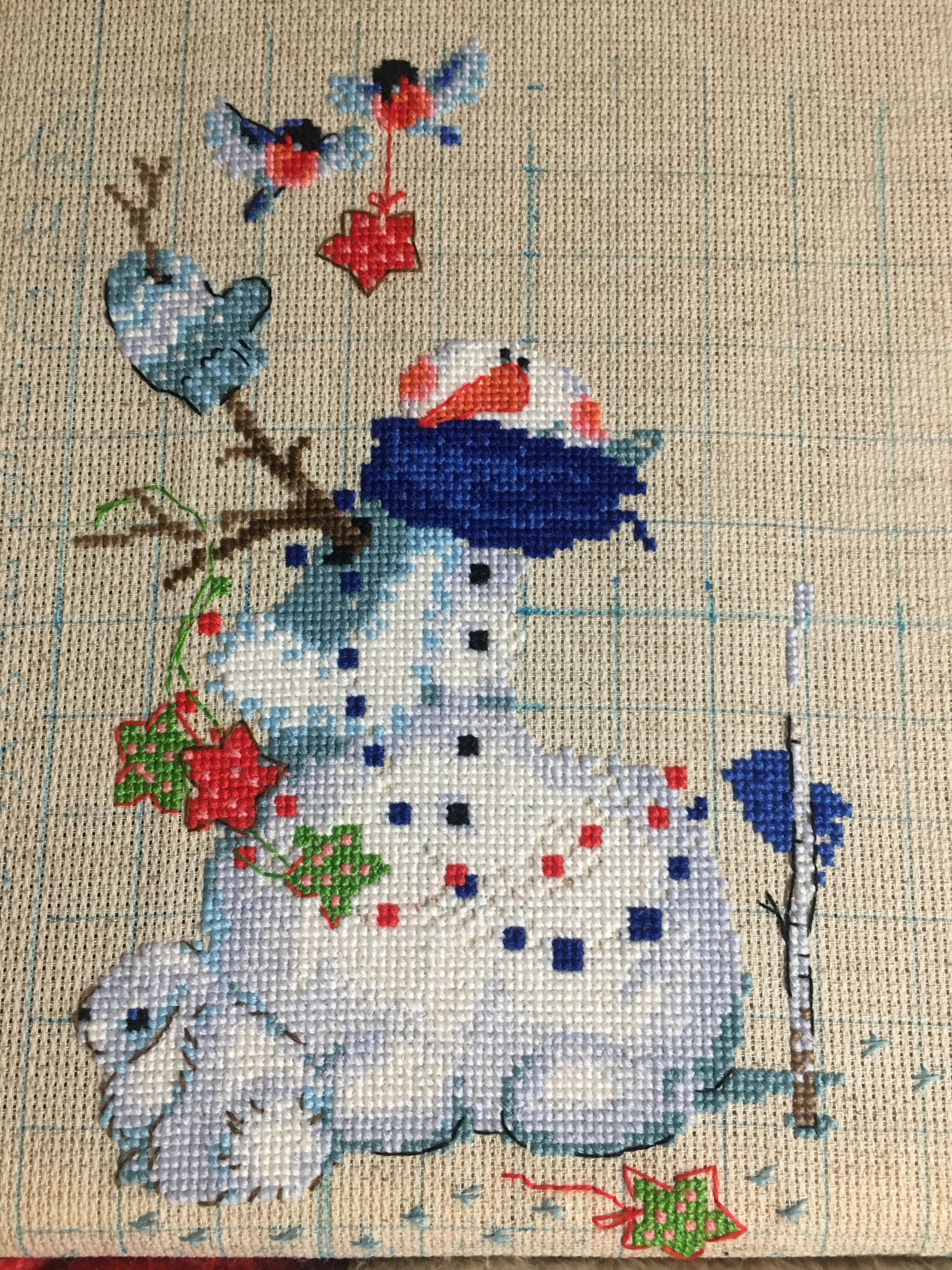 Я вышивала видоизменённый сувенирный набор с шерстью на Мурано (32каунт) к