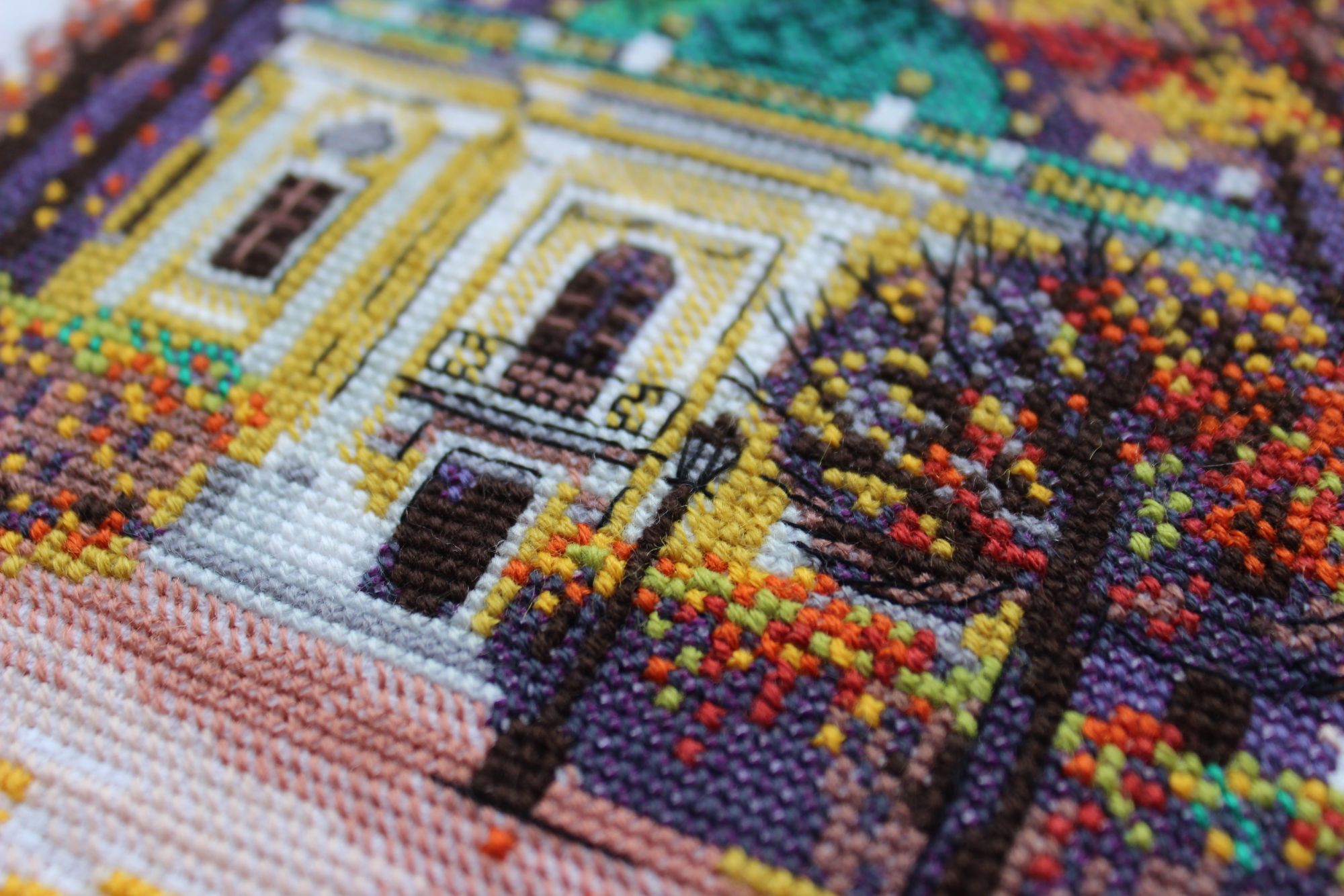 Работа и простая  и сложная для меня была. Сложности были в большом количестве одиночек, но куда без них,  разноцветные осенние листья все-таки. Но с другой стороны, одиночки более-менее можно было просчитать и шить с не очень длинными  протяжками одной ниткой. Еще меня тормозили бленды, здесь они такие, где нижний полукрест шьется одним цветом, а верхний другим. И я все время пыталась рационально использовать нитку  цвета, и чтоб нижний ей вышить в одном значке и верхним в другом. :girl_hide:. а это всегда требовало сильной концентрации, и на расслобоне повышивать не получалось.