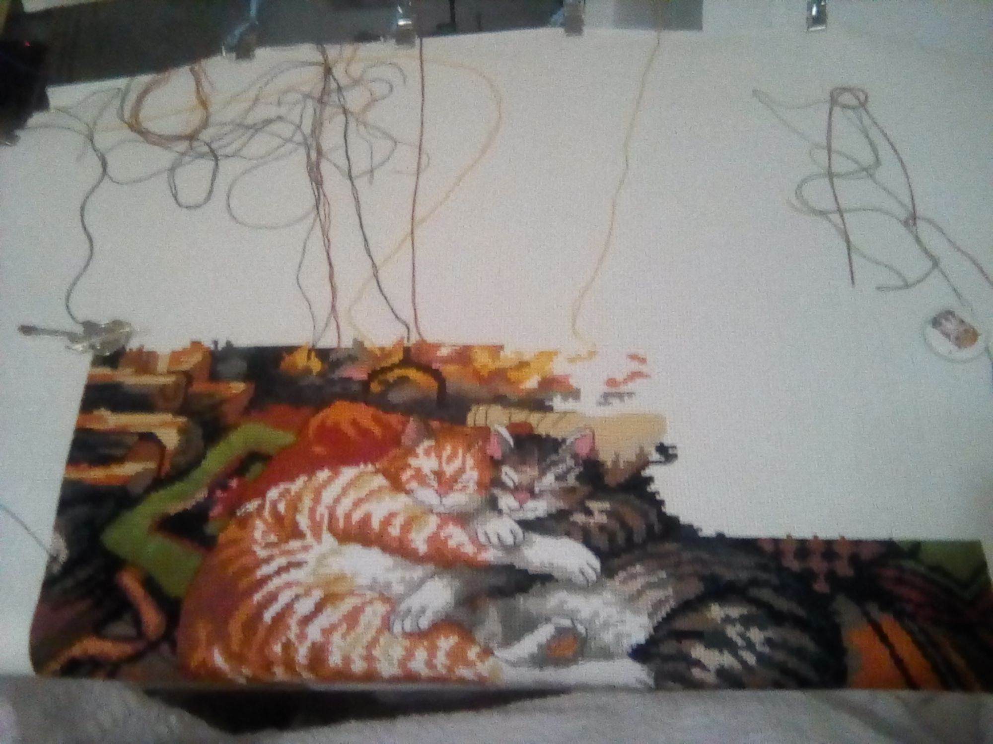 10 января 2018 Всем привет! А вот и я! Загуляла я совсем, все праздники тут не показывалась Зато вышивала))) 1. Котоподушка окончена!!!Было: Стало: Постирана и поглажена! После вереска, будет еще одна))) 2. Собственно сам вереск! Так много заморочек было с цветовыми пятнышками в лаванде, что я решилась попробовать парковку!! Ох... все-таки этот зверь пока мне не очень дается и нифига не укрощается, но я стараюсь!!! Зато точно ничего не пропускаю и сразу видна обалденная красота))) Ради этого даже разметила основу мононитью, хотя обычно шью без разметки) 3. Котики у камина!!!Было: Стало: Окончен третий ряд! Остался последний, который я уже начала! 4. Изольдочка!!!! 5. Ну и на затравку - у меня все готово для дракончика!!! Обалденные ниточки (Наденька, еще раз спасибо за помощь!) и равномерка 32 каунта!!! Ух! Жду - не дождусь!!! Всех с наступившими праздниками!!! Что бы все Ваши мечты сбывались! Здоровье было богатырским! Вторые половинки любили, понимали и радовали! А детки доставляли только приятные хлопоты!!!! Люблю Вас rolihka, Naduh, Svetl@n@ и 22 других сказали спасибо Поделиться сообщением Ссылка на сообщение