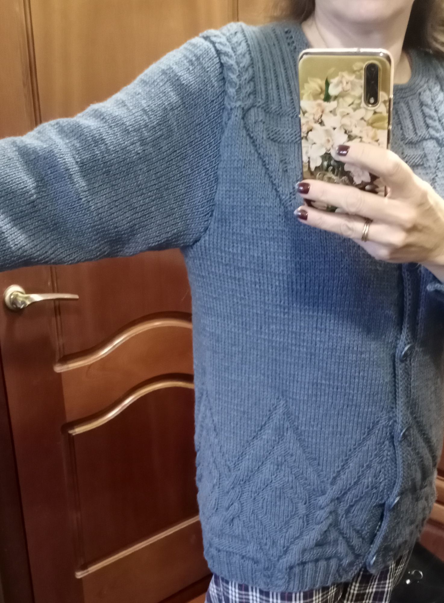 10 марта 2021 Только что, Verok сказал(а): Всем, добрый вечер! Хочу показать очередную готовую работу. Эту кофту-кардиган я связала своей маме. Нашла эту модель опять в интернете. Вязала по описанию, размер М-L. Очень надеюсь, что маме подойдет. Из-за карантина я её не видела почти 2 года. Надеюсь, что скоро увидимся. Примеряла на себя, думаю с размерами не ошиблась, особенно рукава. Решила вязать без швов по бокам. Кардиган замечательный, и цвет,и фасончик....планка под пуговки интересно связана... Verok сказал(а) спасибо Поделиться сообщением Ссылка на сообщение