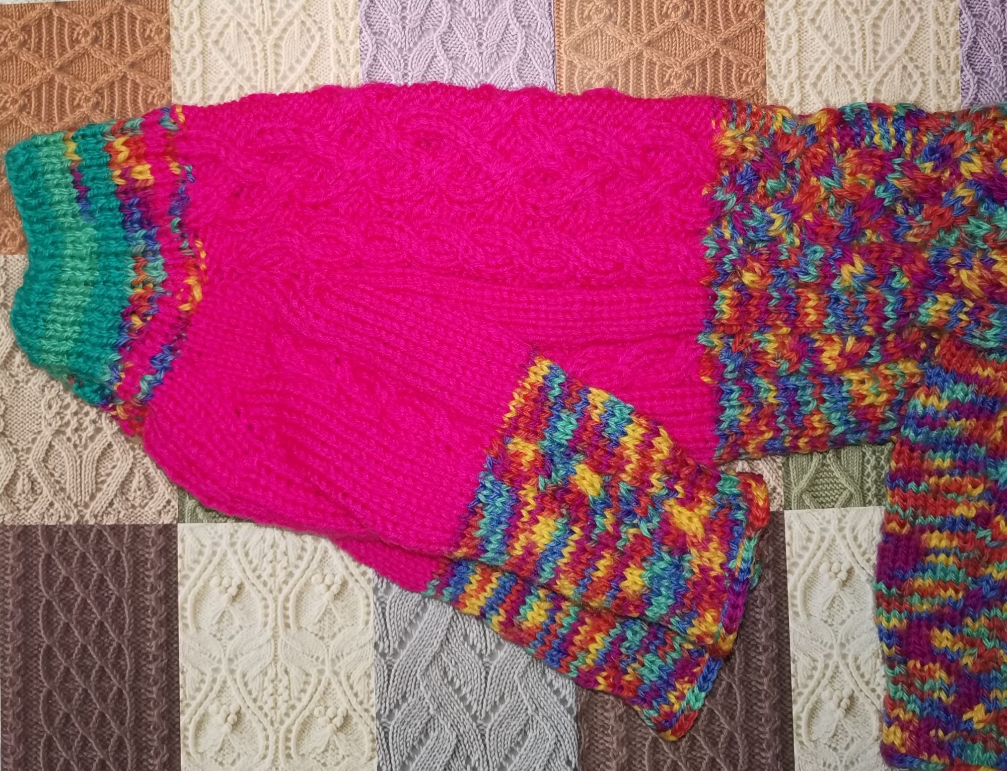 2 января 2022 Никогда не вязала рукава регланом, но есть идеи попробовать связать сыну свитер!)) Связала из остатков ниточек комбез для Джесси, рукава реглан, а штанины вязала от низа спинки. Скрытый текст Малиновый цвет такой яркий, "кислотный", что почти на всех фотках "смазан")) Первые попытки были в 2012 году, и то я вязала для маленькой собачки Я тогда не учла, что по линиям реглана переда (для собак и кошек!) не надо делать прибавления. Что такое росток - даже понятия не имела)) Вот на этой фоточке видно, что связано неправильно, свитерок вязала в 2012, прибавления делала и на регланных линиях переда, и между передними лапками. Получилось широковато. Спустя столько лет распускать не буду: Сейчас решила поэкспериментировать, вязала "по правилам" )) Задача максимум - связать на следующем комбезе и штанишки (!!) регланом, а пока уже третий раз распустила эту часть, никак не пойму откуда начинать их вязать BONA-чка, Vkiseleva21, irisheckin и 9 других сказали спасибо Поделиться сообщением Ссылка на сообщение
