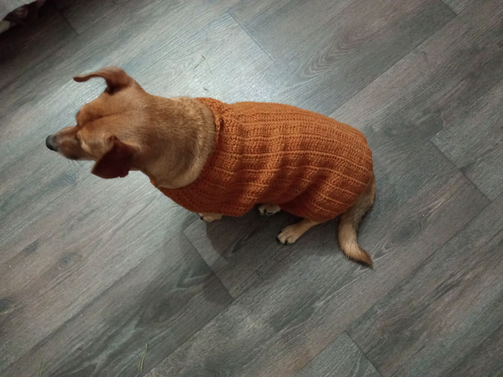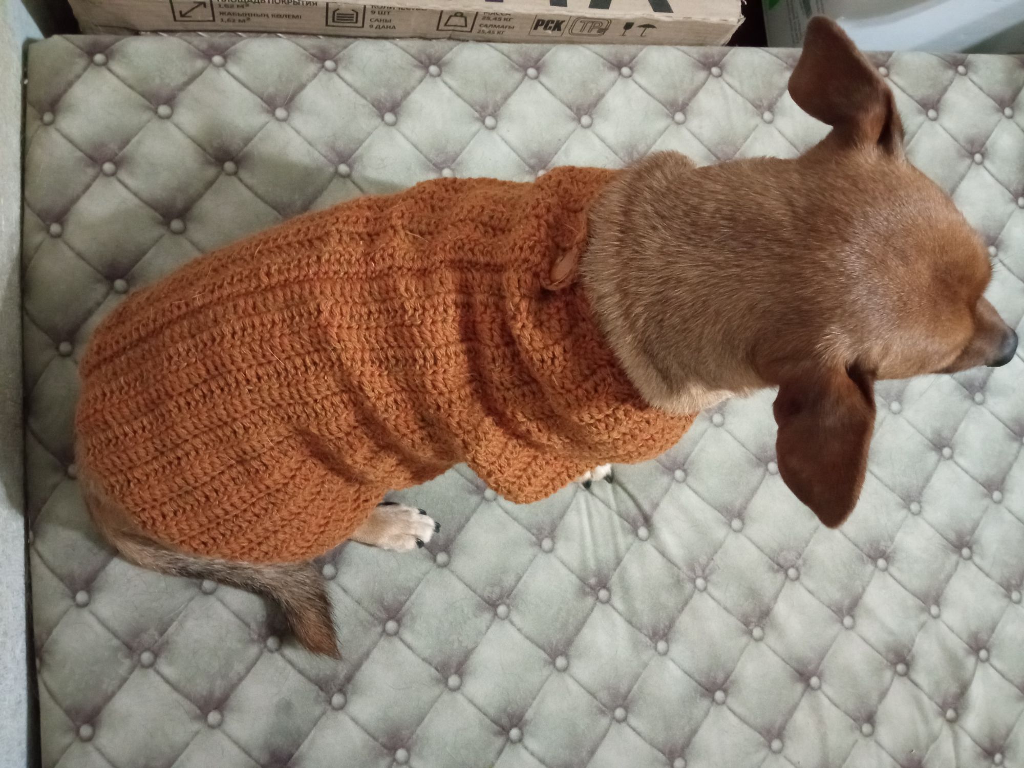 19 января 2022 Доброго! Два дня вязала-мерила-перевязывала Филе кофточку. Он у нас категорически не хочет в зиму обрастать и ходит с голым пузиком. Старая кофточка...кончилась))), вот свврганила крючком из двух видов шерсти. Фотографироваться Филя не очень хотел. Выше вязать не стала, там уже ошейник. Nadinka-Blondinka, ноктюрн, Giulina и 31 других сказали спасибо Поделиться сообщением Ссылка на сообщение