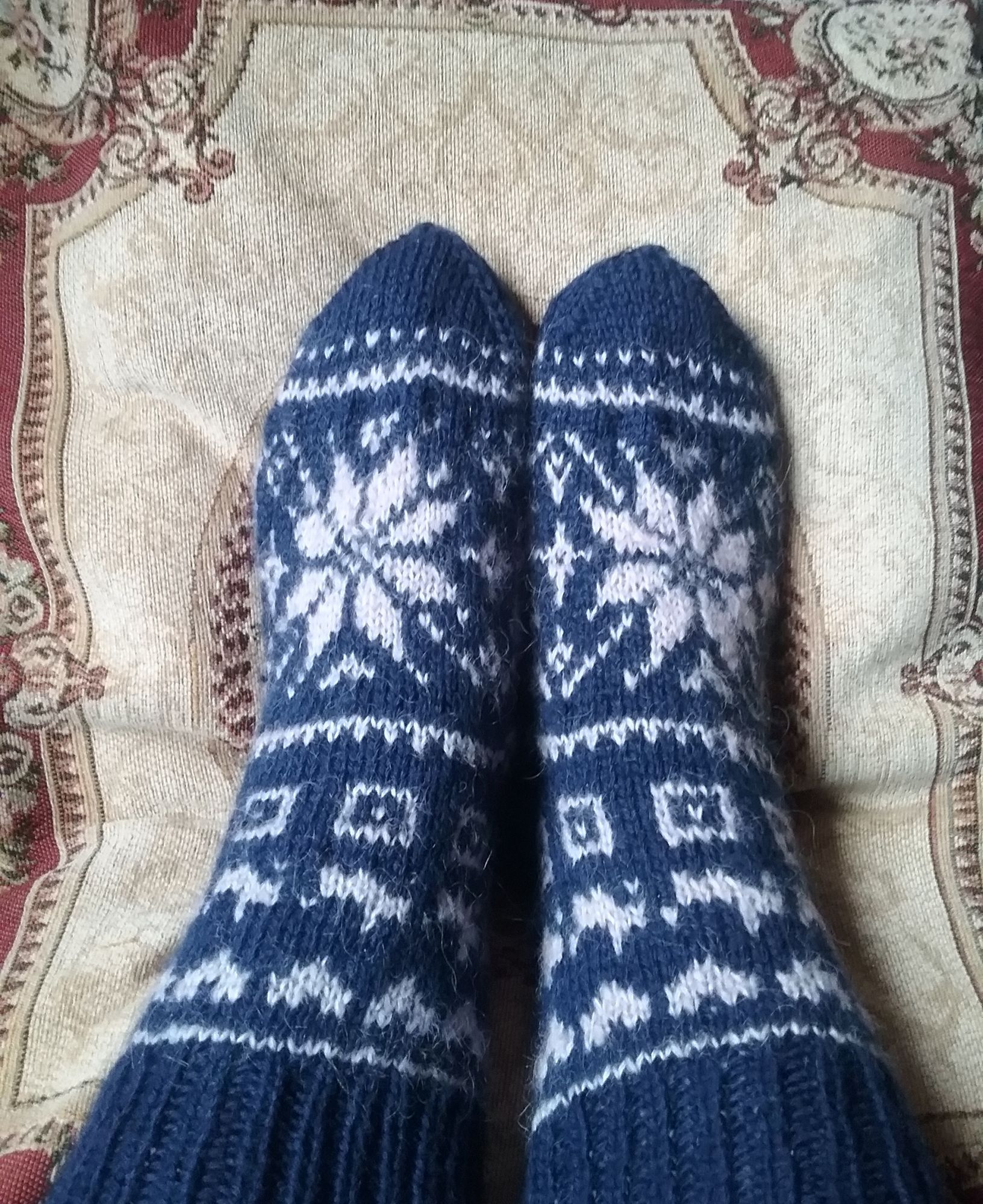 16 ноября 2020 14.11.2020 в 21:51, Звезда в шоке сказал(а): Подсаживаюсь и я на вязание) Недавно подарили нам по паре носков вязаных норвежским узором. Прикольно, круто... Потом разглядела я их поближе, погуглила насчет схем, достала спицы, сдула с них пыль, и-- одним махом скомбинировала разные узоры. Могу похвастаться, первый блин! Какие нарядные! Обожаю жаккарды. Звезда в шоке сказал(а) спасибо Поделиться сообщением Ссылка на сообщение