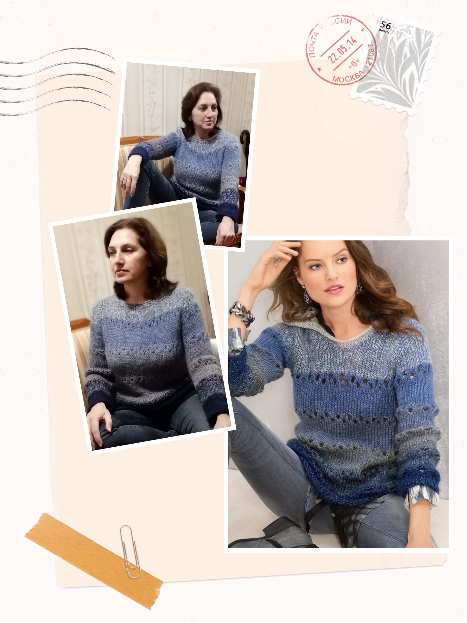 18 ноября 2020 Всем привет! Понравился в интернете пуловер. Описание не могла долго найти. Все ходила нитки подбирала.. И вот однажды случайно нашла описание... Оказывается нужно всего 4 цвета ниток, которые вяжутся в две нити с переходом от одного цвета к другому. Нитки подобрала производитель Камтекс "Астория" (хлопок с шерстью-3цвета) и мохер голд (1цвет). Пришлось чуточку переделать верх и рукава, чтобы полоски по рисунку сошлись. Вот что у меня получилось. Turtle_aylataN, Fascinata, Пумочка-13 и 11 других сказали спасибо Поделиться сообщением Ссылка на сообщение