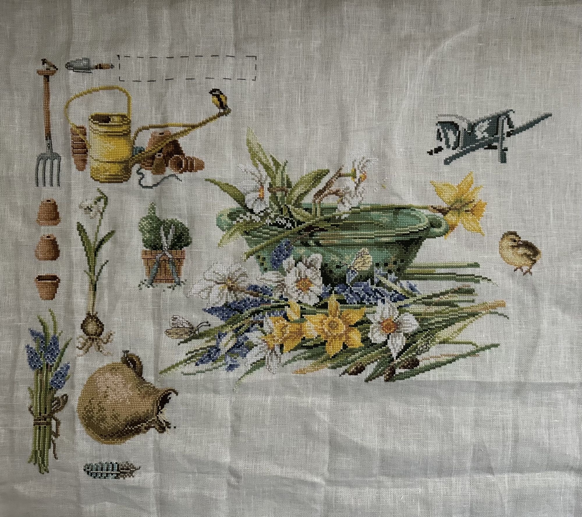 16 мая 2023 Всем членам и не членам садоводческого товарищества Морская капуста, привет! Ну вот как тут вышивать или писать отчет, когда хочется еще и еще раз рассматривать Ваши фотографии с тюльпанами и сиренью? Вы меня сегодня реально побаловали. Спасибо Итак, отчет. Прогресс у меня, прямо скажем, средненький. . Решила я заморочиться с надписью наверху. Госпожу Бастин я очень уважаю, но ее имя писать не буду. Себя я тоже уважаю и даже иногда люблю, но свое имя тем более писать не буду. Я очень позабавилась, представляя свое имя на этом шикарном сэмплере Такую чушь даже страшно себе представить. Так вот. Что делать? Я перешерстила свои схемы Ланарте по рисункам Бастин и ничего лучше, чем бабочки на сэмплере всех сезонов не нашла. Они идеально подходят по размеру (15 крестиков в высоту и 25 - ширину), вышиваются только теми цветами ниток, которыми вышивается наш сэмплер и подходят по тематике. Я говорю об этих бабочках . Можно две поместить в одну сторону, а одну - другую. Я пыталась найти какую-нибудь горизонтально расположенную веточку в нашей палитре, но не нашла. По крайней мере в моих схемах ничего подходящего не было. Девочки, а какие у Вас идеи? Ну и произвольная программа. Сегодня мне даже стыдно выкладывать свои фотографии после того, как я насмотрелась на Вашу весну. Ну что есть Сегодня ходили на нашу с мужем прогулку и увидели на дороге зайчика. Боялись его спугнуть, поэтому сфотографировали издалека . А эти тюльпаны мне подарил сын на День Матери зная, что я их обожаю Ну вот и все на сегодня. Всем хорошего дня и хорошей недели! nata2017, Охотница, Lucia-del-Umago и 14 других сказали спасибо Поделиться сообщением Ссылка на сообщение