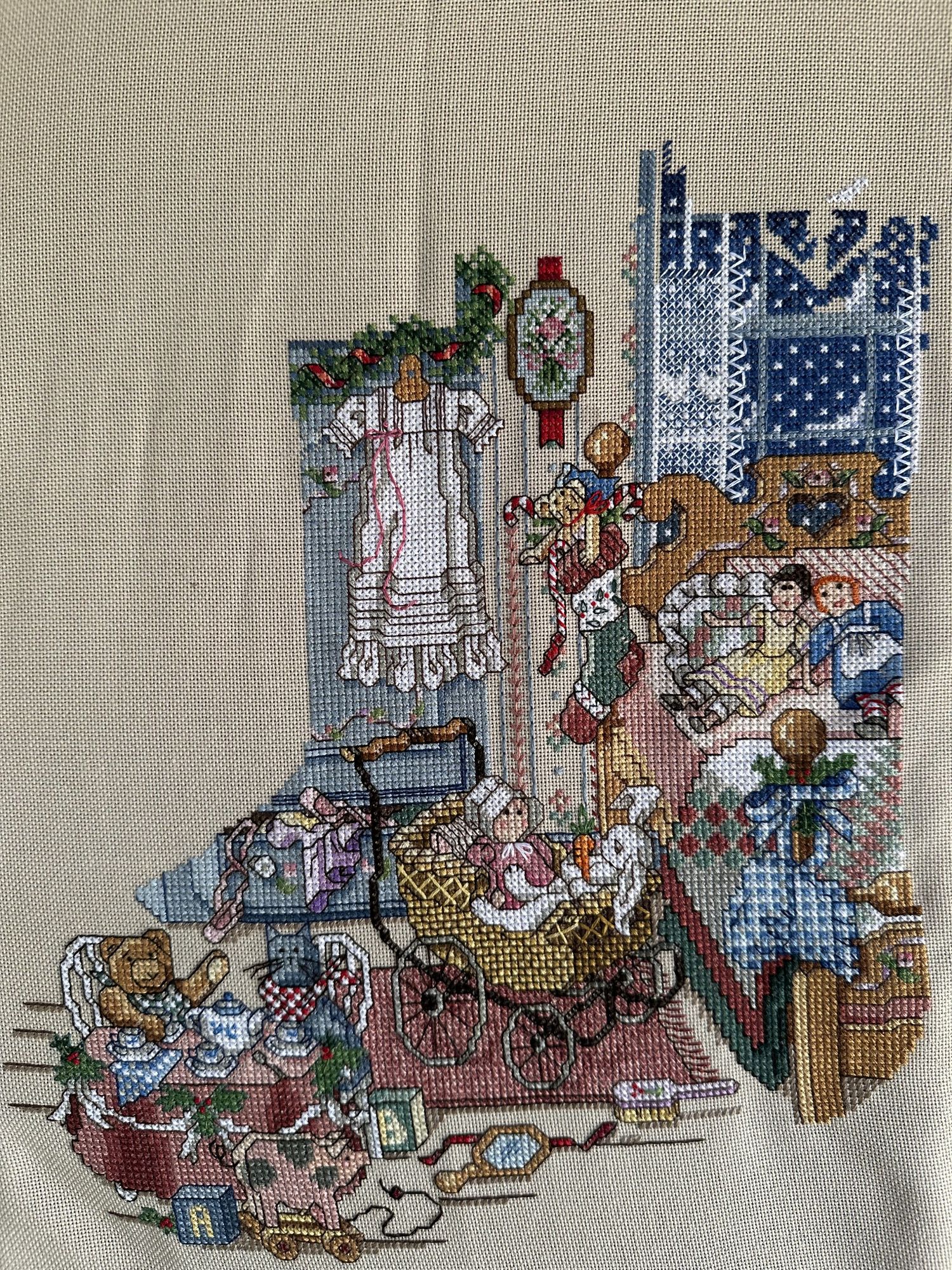 27 августа Девочки, привет! Отчитаюсь за текущий и пропущенный отчет. Я закончила сапожок Sugar and Spice. Гаечку мне уже заочно позеленили, за что спасибо нашим модераторам. Осталось вышить только имя, которое будущие родители нам пока не сообщают. Также я закончила сапожок Rooftop Santa Stocking. Зеленю гаечку. Вначале он предназначался для сына племянника моего мужа, так как моя невестка не очень-то им вдохновилась. Но когда я закончила все отделочные швы, она попросила оставить его нашему малышу - моему третьему внуку. На том и сошлись. Теперь мне нужно мобилизоваться и срочно вышить еще один сапожок для того ребенка, который остался не у дел. Но и это еще не все. Моя старшая невестка продолжает мне жужжать в уши, что она терпеливо ждет сапожок с тремя детьми, провожающими летящего Санту взглядами у окна (фото не в гаечку). Девочки, если Вы слышали илизнаете, подскажите кто из дизайнеров занимается всякими дополнениями, изменениями схем. Буду очень благодарна за любую информацию. Я в VK практически никогда не бываю и ни в каких группах не состою, поэтому даже не представляю к кому обратиться. Ну вот и все на сегодня. Всем хорошего дня. АлёNка, olnikva, Bayuliya и 4 других сказали спасибо Поделиться сообщением Ссылка на сообщение