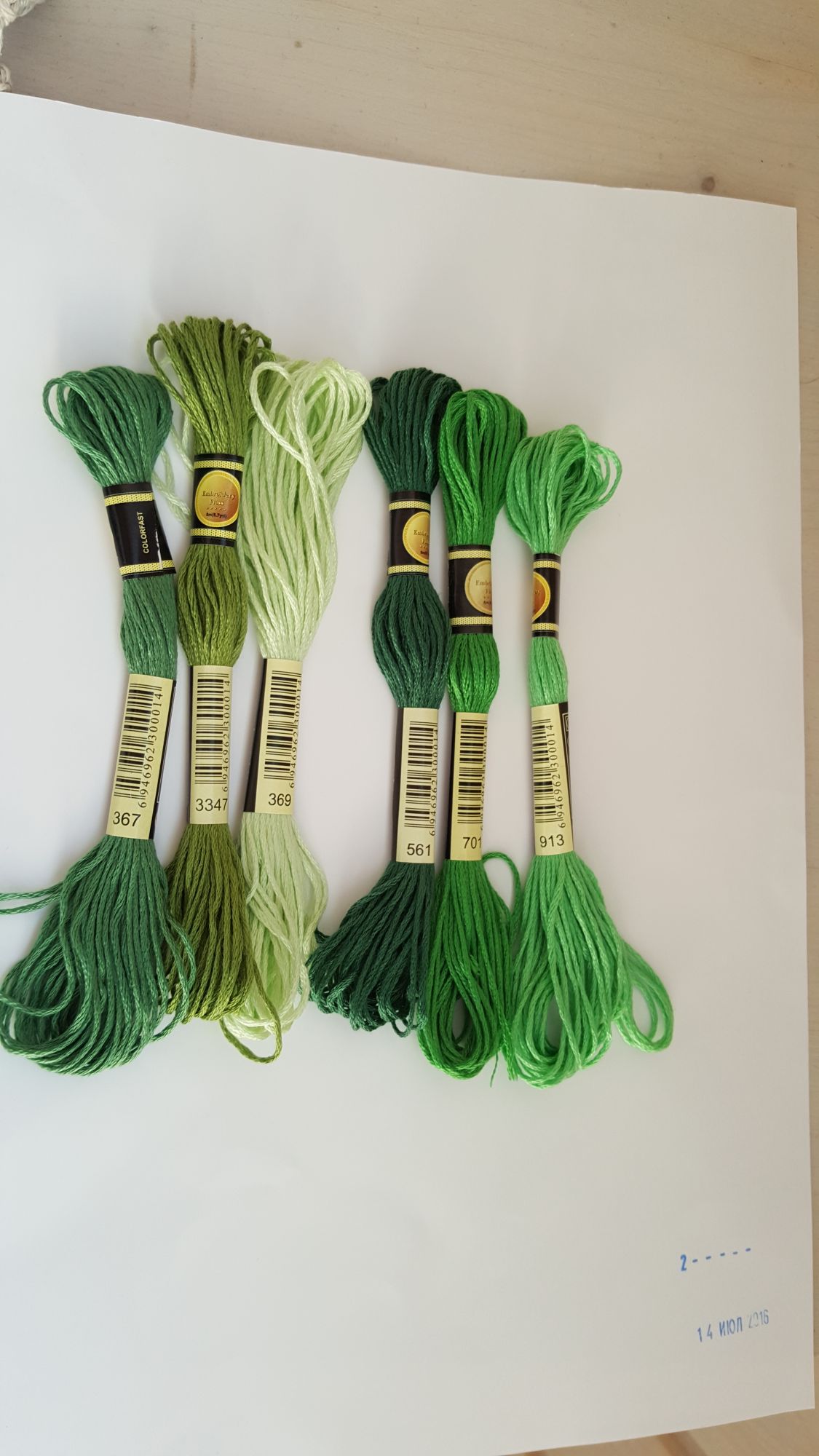 25 сентября 2016 5 часов назад, tessykat сказал: Заодно покажу вам мои два зеленых из набора Ездили в деревню, не успела днём сделать фото своих ниток. А сейчас сил нет вытаскивать их из пакетиков. Подождем, что покажет Юля. Если ничего не подойдёт, вытащу свои. А то пакетики блестят, плохо видно. tessykat, yuss, Marina_19 и 1 другой сказали спасибо Поделиться сообщением Ссылка на сообщение