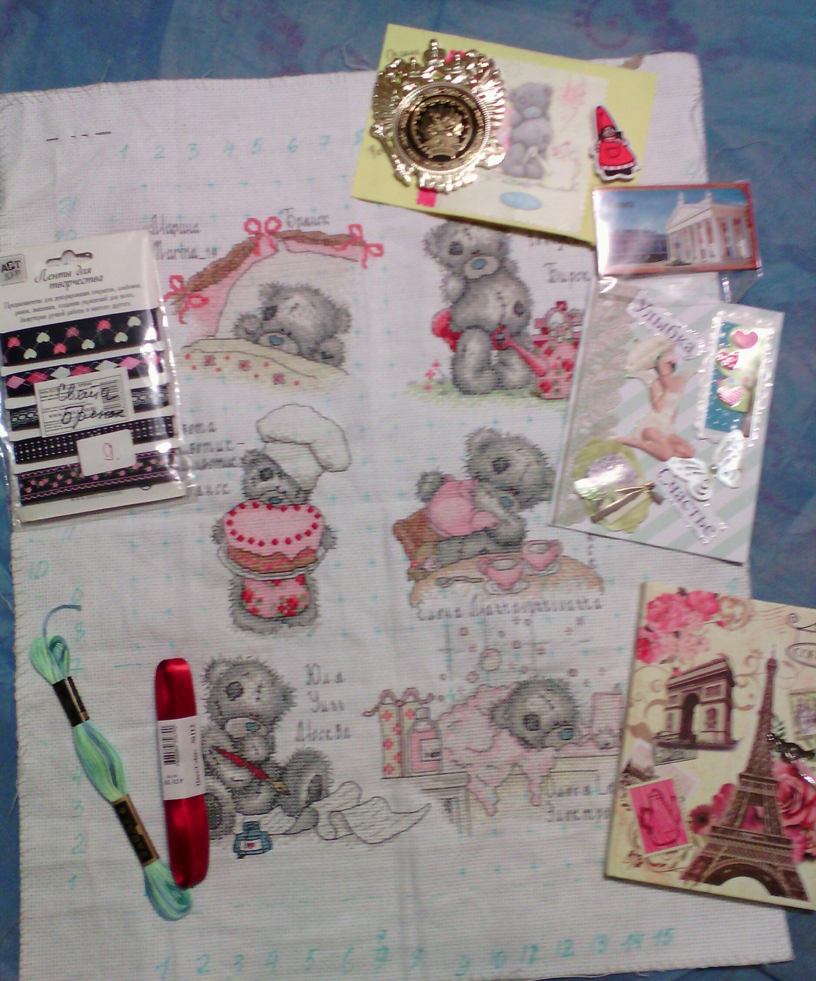12 апреля 2017 А вот и я. Домой сегодня поздно приехали с разрядившимся телефоном... Поэтому так припозднилась. Вот мои чудесные подарки!!!!! Робин с сувенирами. Два замечательных наборчика и гостинцы! А ещё семена цветов! Так что скучать мне не придётся в ближайшее время! Спасибо, Марина! Спасибо, девочки! Надеюсь, после выходных и я отправлю Танин Робин с подарочками домой.))) Marina_19, Nadezhda M, masha-vyshivasha и 4 других сказали спасибо Поделиться сообщением Ссылка на сообщение