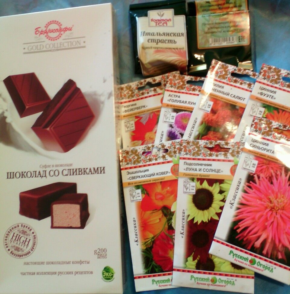 13 апреля 2017 23 часа назад, ksen40 сказал: А вот и я. Домой сегодня поздно приехали с разрядившимся телефоном... Поэтому так припозднилась. Вот мои чудесные подарки!!!!! Робин с сувенирами. Два замечательных наборчика и гостинцы! А ещё семена цветов! Так что скучать мне не придётся в ближайшее время! Спасибо, Марина! Спасибо, девочки! Надеюсь, после выходных и я отправлю Танин Робин с подарочками домой.))) Пей чай с кофетками и цветочки сажай ,пусть вокруг красиво будит))))) Ксен40, Цветик-семицветик, yuss и 2 других сказали спасибо Поделиться сообщением Ссылка на сообщение