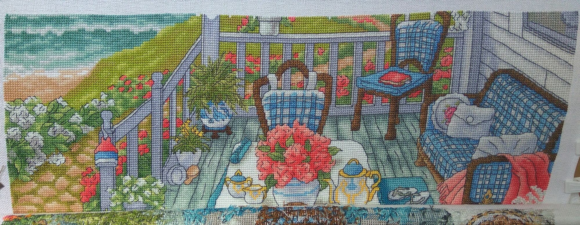 25 мая 2017 5 часов назад, maui сказал: Уже и вид с веранды появился, очень по-летнему! Осталась самая лёгкая, я надеюсь, часть там и полукрест будет, и бэка гораздо меньше, и цветов меньше, шьёшь и шьёшь себе maui сказал(а) спасибо Поделиться сообщением Ссылка на сообщение