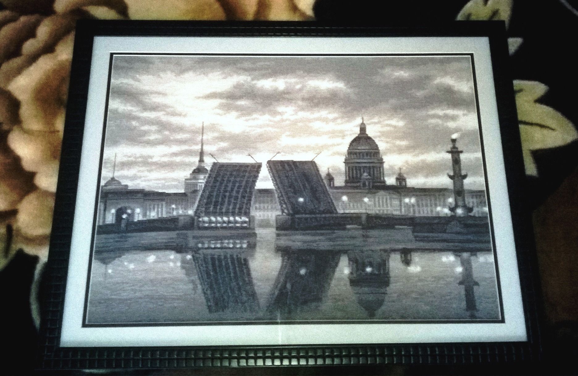 18 октября 2016 Здравствуйте, дорогие коллеги! Я совсем недавно на этом сайте и никак не решалась на участие в конкурсах. Но сегодня наконец-то созрела:) Представляю всего одну работу, которая соответствует условиям конкурса... Городской пейзаж Санкт-Петербурга от Золотого Руно. Отшив длился целый год, оформлен в марте текущего года. Размер без багета - 42,8x56,7см, аида 18, всего в работе выполнено 120000 крестиков. Это моя первая и пока единственная работа подобных размеров. Сибирская Кошка, Бондаренко, marusya64 и 113 других сказали спасибо Поделиться сообщением Ссылка на сообщение