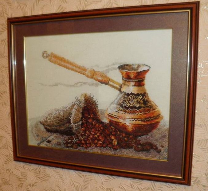 23 октября 2016 Добрый день всем! Позвольте и мне впервые принять участие! 1. Охотники на привале. Чаривна Мить, серия (Волшебное мгновение) М-124. 92,5х63,5, аида 14. Давно хотела вышить эту картину, больше всех понравилась именно эта разработка. . Самая крупная моя работа. Размером почти с оригинал картины Перова. 2. Волшебный фонарь, Овен. Все больше интересных и разнообразных наборов появляется у этой фирмы. Этот набор очаровал предновогодним ощущением праздника. 3. Запах кофе. Овен. Долго выбирала хороший "кофейный" набор, в этом зерна показались такими живыми, что кажется - даже аромат чувствуется. И изящная джезвочка хороша. Никаких блестящих нитей, но тем не менее впечатление, что позолота сверкает. ОльгаВл, kas_julia, Lena_Dm и 116 других сказали спасибо Поделиться сообщением Ссылка на сообщение