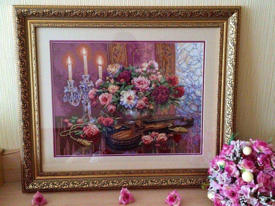 23 октября 2016 Привет всем рукодельницам! С удовольствием участвую в конкурсе со своей работой от Dimensions "Romantic Floral" . Увидев однажды этот дизайн просто влюбилась в него. Вышивала 9,5 месяцев с перерывами на другие небольшие работы. Вышивается на аиде 14, размер готовой работы 41*33 см. Оформлением очень довольна: двойное паспарту и шикарный золоченный багет. Анна_С, pepita, Lena_Dm и 100 других сказали спасибо Поделиться сообщением Ссылка на сообщение