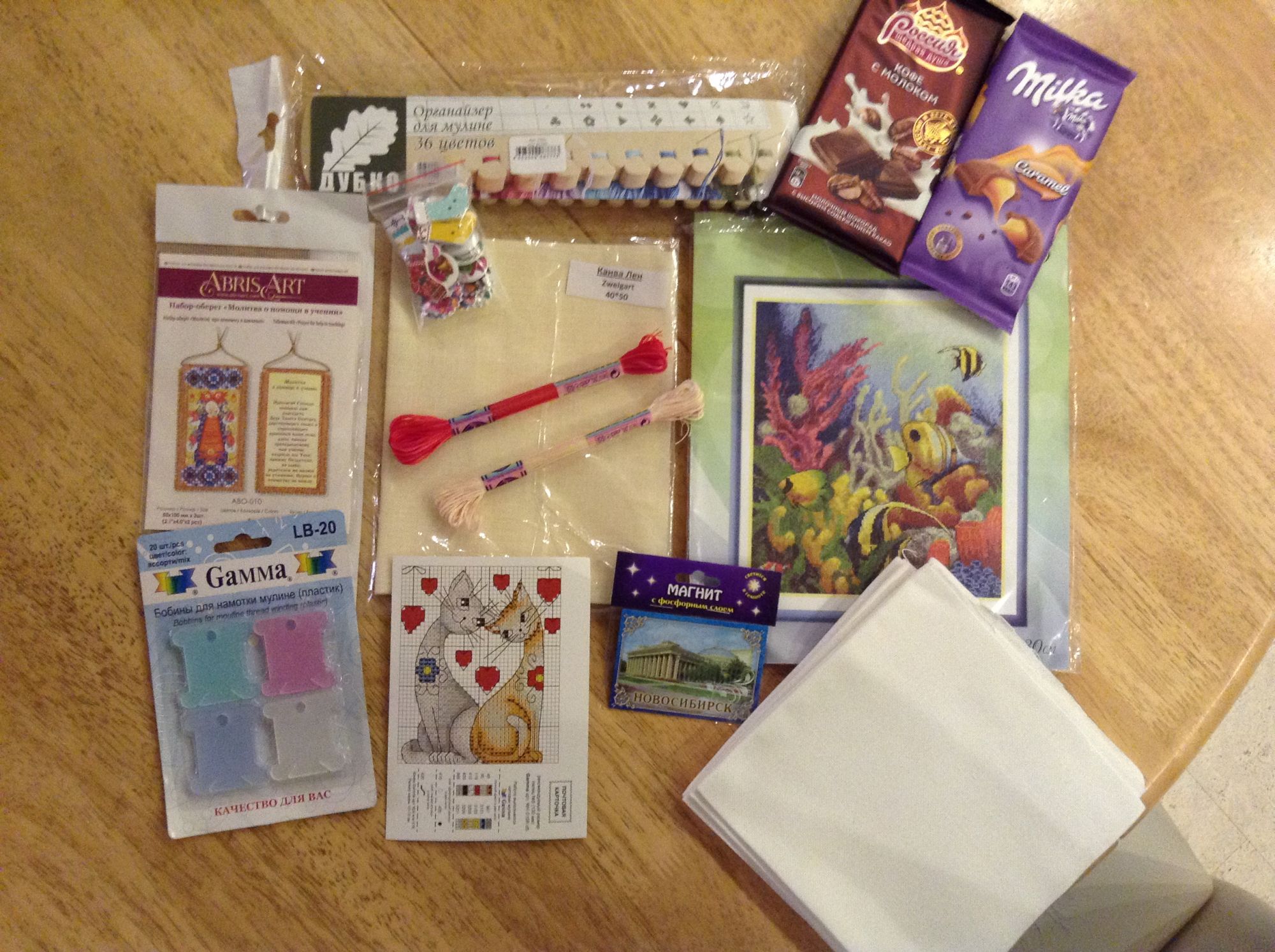 26 сентября 2017 Девчата, привет! Я сегодня получила посылочку со своим робином и вашими подарочками! Рада-радехонька! это магнитики и ниточки от всех участниц. Открыточка от Ирины... Я так растрогана, это так необыкновенно спасибо вам всем большущее! это подарочки от Лены-magik. Чудо чудное, диво дивное! Чего тут только нет! И хочушные наборчики, и ниточки, и равномерочки разнообразные! Органайзер, бобинки, открыточка! И магнитик, и сладости! Вобщем, чахну над златом, аки Кощей! Лена, спасибо огромное! Обнимаю до треска в рёбрах! а вот мой путешественник! Очень нравится! И снова всех вас сердечно благодарю! Девочки, я извиняюсь, что запропала. У меня старший в 1-й класс пошёл, я сейчас только моргать успеваю. Дни летят необычайно быстро, а вышивка почти не движется. Чтоб не думали, что я бездельница, покажу, чего нашила в Аленкином робине. маловато, но быстрей никак, к сожалению. Днем присесть некогда, а по вечерам 30-40 крестиков и вырубаюсь Надеюсь, не запинаете. В общем, всех обнимаю! *убежала проверять каракули в прописи* Marteire, юлия07, Letto и 8 других сказали спасибо Поделиться сообщением Ссылка на сообщение