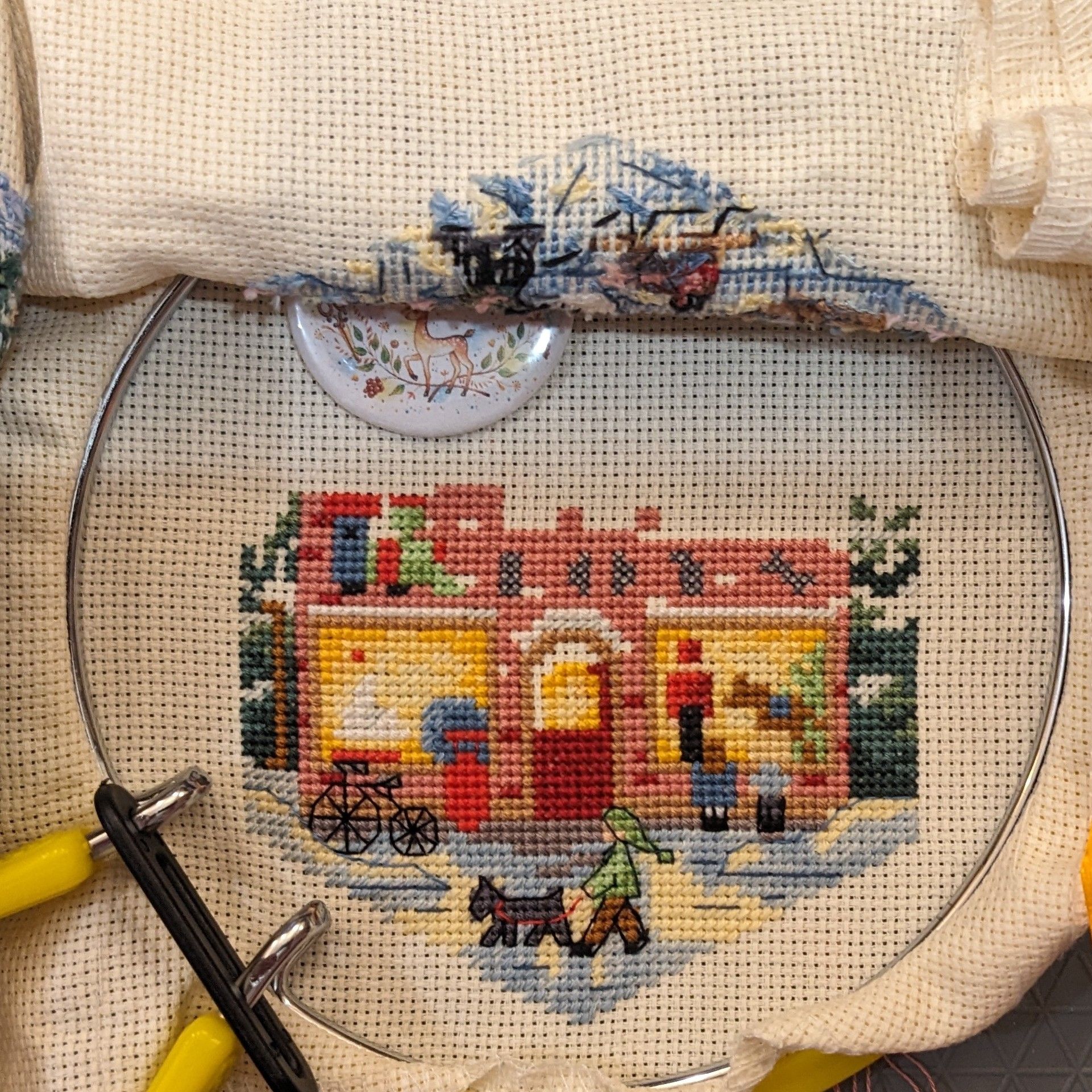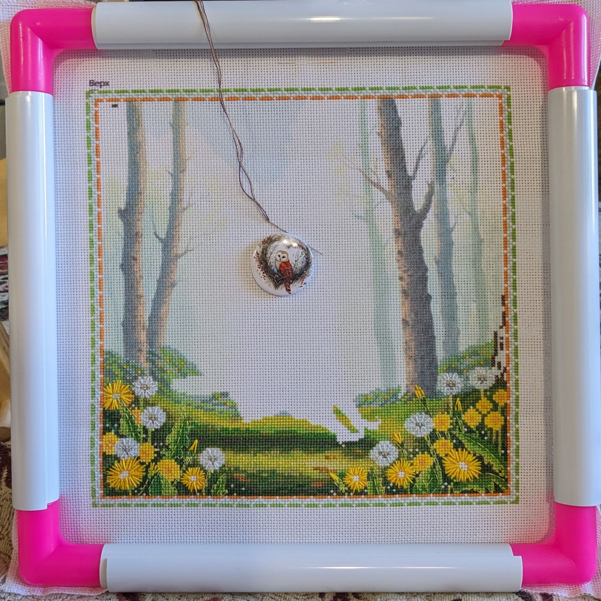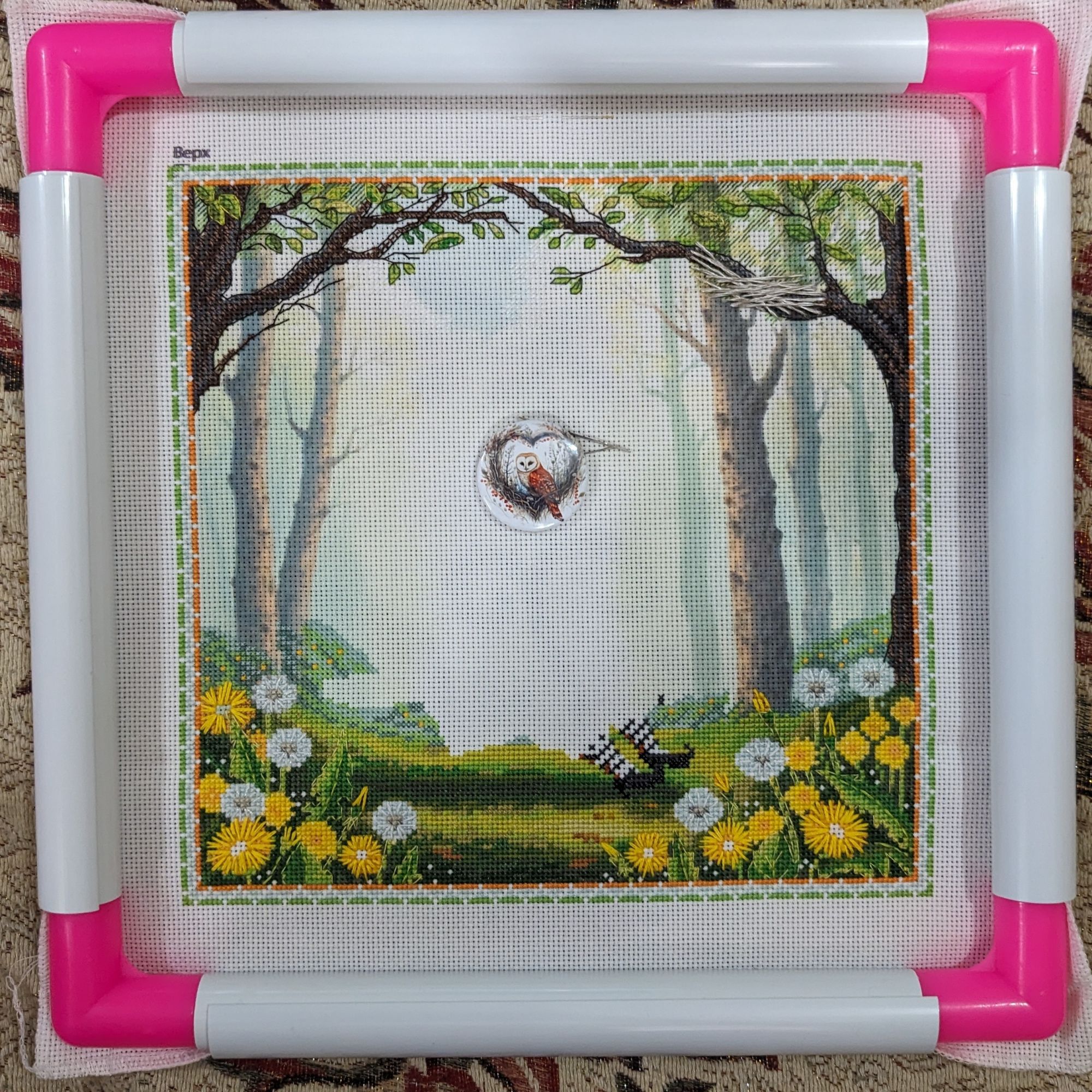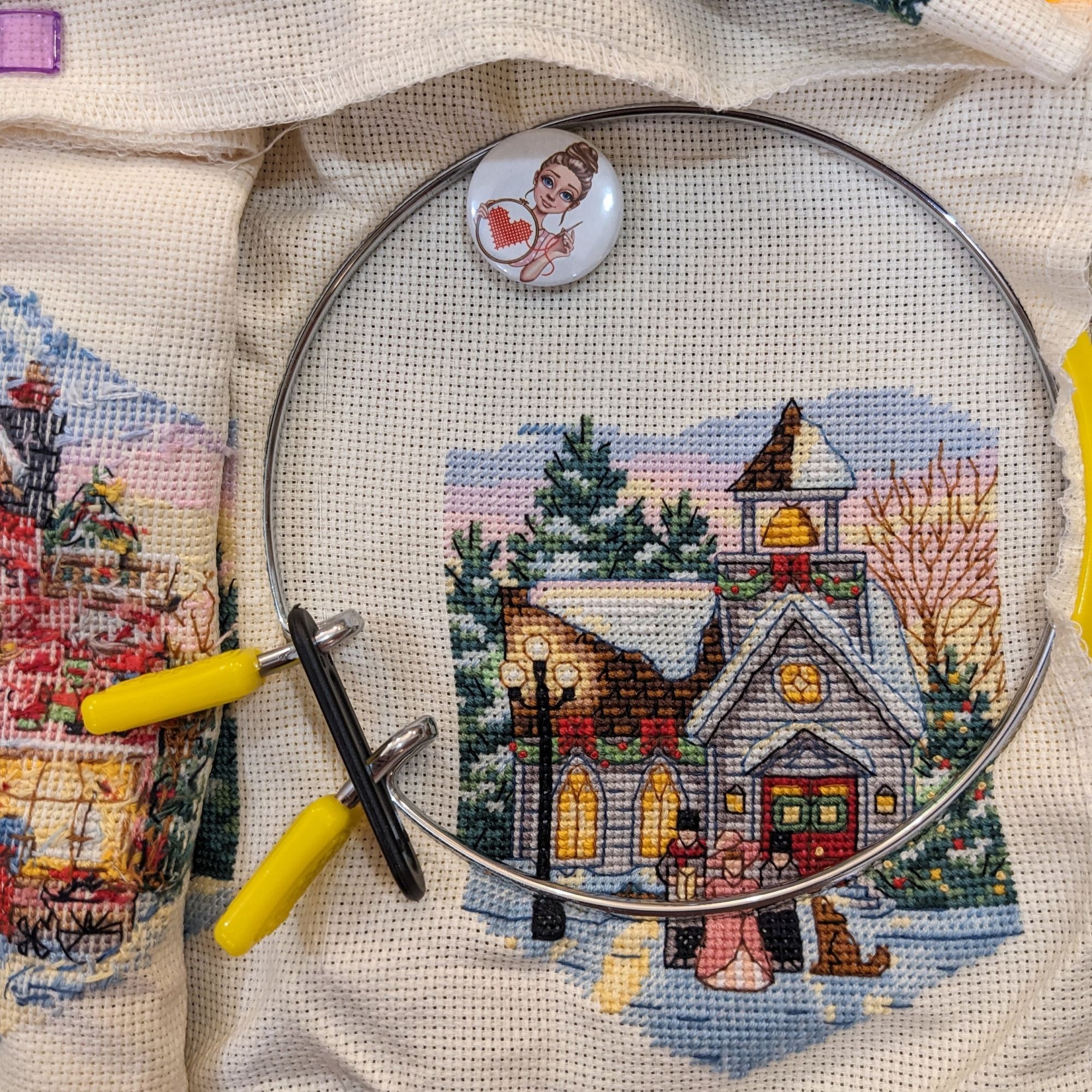 25 марта Ну, что же у меня новенького? А новенького у меня финиш и старты Лето в деревне от Совиного леса закончено. Приятный процесс, каждый элемент в удовольствие Процессы тоже неплохо пошли 1. Немного поработала над опушкой у северной королевы от Мирабилии 2. Ядвига от Золотых ручек. Закрыла полностью низ, начинаю верх, деревья. Бабулю оставлю на сладенькое 3. Ковер от Панны - по одной стороне вышила бордюр. Ну и новые старты. 1. Тут сразу старт и финиш. Мне очень понравился дизайн Совиного леса Красная крепость, что я решила вышить отдельно башню. Ведь это башня нашего нижегородского кремля. Основу взяла белфаст голубой винтажный, 32 каунт, нитки - остатки от Красной крепости, совиные дмс И наша башня в новогоднем 2. Новый старт для Совиной академии - окошки от Совиного леса, основу взяла из старых запасов коричневую, нитки Совиного леса ДМС. Одно окошко успела вышить. И не устояла против нового ковра от Панны - обложка на паспорт. Пополнила закрома Alinia, Хозяйка смешных зверей, lvlist и 1 другой сказали спасибо Поделиться сообщением Ссылка на сообщение