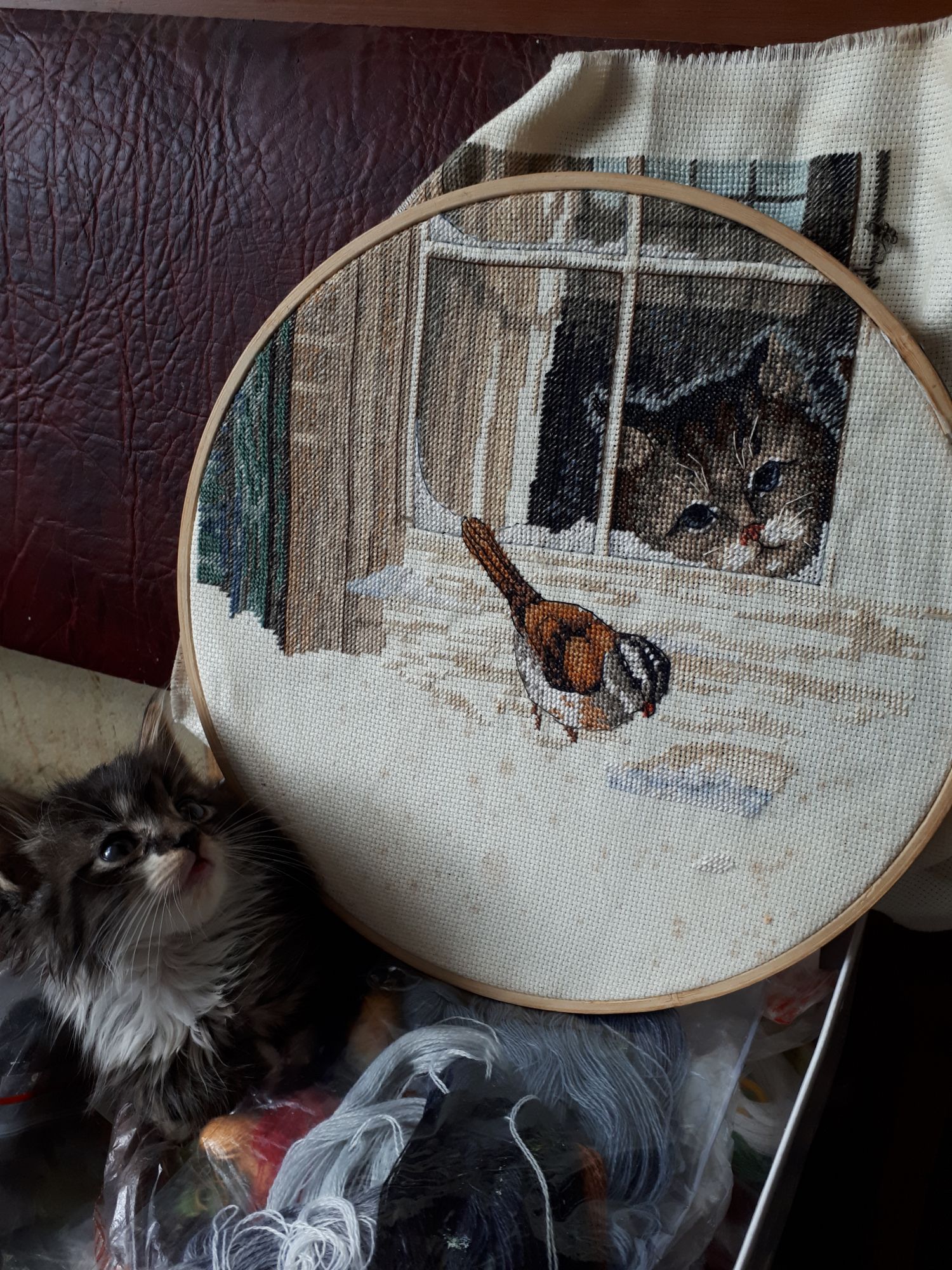 4 июня 2018 9 минут назад, anjyta сказал: Конечно, живой!))))) Даже набедокурить успел, на столике на салфетке кофе поставила, рядом вышивка лежала, как всегда, ему надо было немедленно проинспектировать вышитое, хотел запрыгнуть на столик, в результате вместе с вышивкой и чашкой кофе оказался на полу... результат на фото ..( надеюсь, пятна под вышивкой не будут видны... так замер))) Красавчик))) А кофе это даа... Я однажды вышивала с распущенными волосами и пила кофе. В какой-то момент я макнула кончики в кофе и вуаля рандомный пятнистый рисунок готов! Как я только его не выводила - ничего не помогло... теперь ни-ни ставить кофе возле вышивки ) Пушистая и anjyta сказали спасибо Поделиться сообщением Ссылка на сообщение