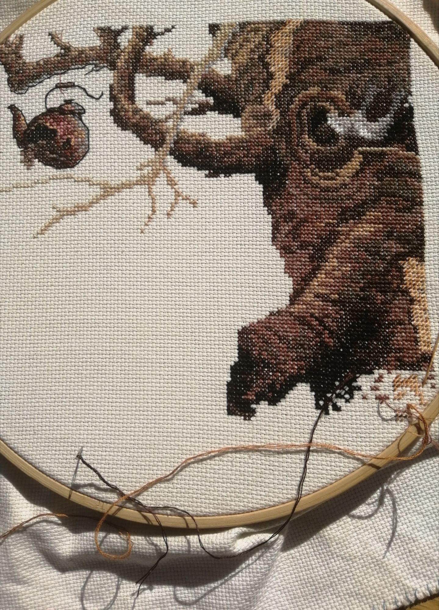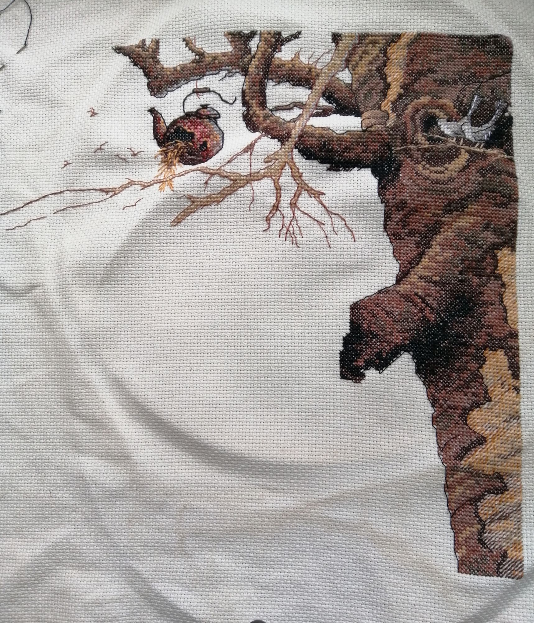 28 августа 2019 21.08.2019 в 14:39, anjyta сказал(а): Несколько дней не совсем летней погоды помогли процессу подрасти. Дерево уже можно разглядеть довольно отчётливо. Вот и готов первый лист из четырех. Только,пока,без главного героя,он появится в конце процесса). Сейчас очередь за бэком, чтобы потом уже со спокойной душой перейти к следующему листу. Очень позитивный процесс,крестики сами ложатся на канву, я только и успеваю,что в иголочку новую ниточку затягивать).. жаль, времени не так много,как хотелось бы, а то шила бы до последнего крестика,не отрываясь! DjOlechka, Аленка-2, Bogdan и 5 других сказали спасибо Поделиться сообщением Ссылка на сообщение