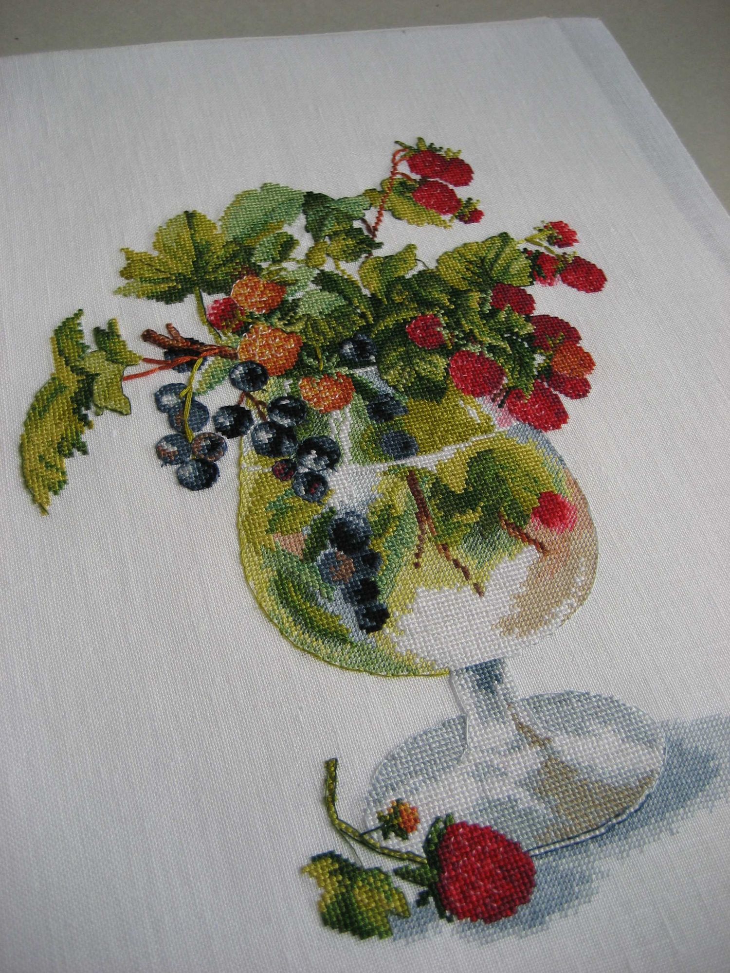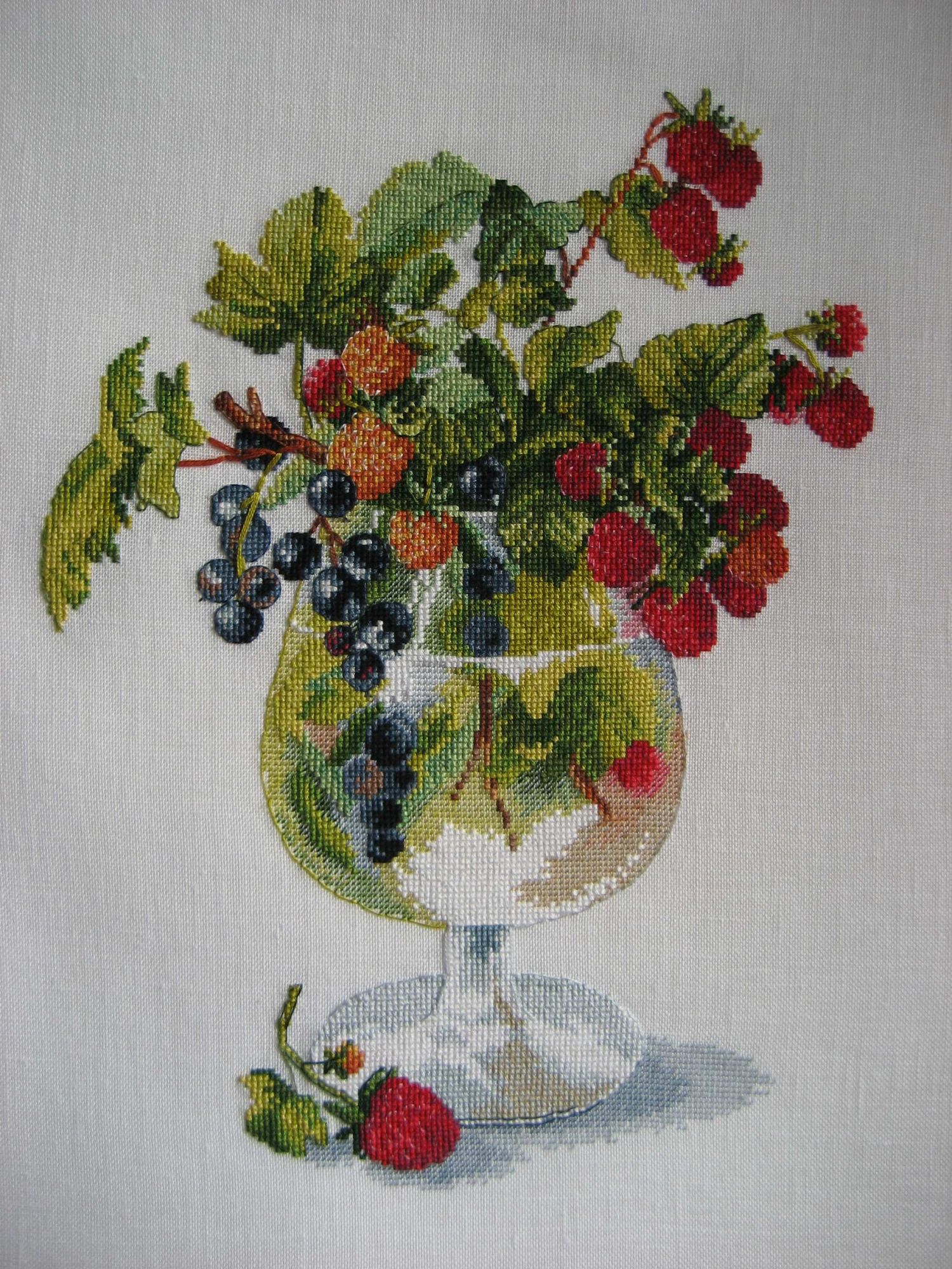 17 июня 2017 Всем привет! Я с отчетом. Только это, увы, не Леопард. Затормозился он у меня, хотя осталось прямо совсем чуть-чуть. А принесла я показать то, что держала в тайне последние месяцы. 1. Овен 887 "Ягодный ликер", 22х29 см, аида 18. Аиду заменила на лен Edinburgh 36 белого цвета (в первый раз на таком мелком льне шила). Разметку сделала мононитью (это, я вам скажу, то еще удовольствие), в интернете нашелся перенабор в PM, сделала себе черно-белую схему и шила в привычном для меня режиме - закрашивая схему и по разметке. Ниточки в наборе - ПНК Кирова, тоненькие, мягкие, послушные, только пришлось с некоторых ниточек утолщения-шарушки убирать, а в остальном ниточки меня очень порадовали. Проработка схемы - изумительная, столько удовольствия от процесса получила и ни разу не пожалела, что выбрала этот дизайн. Итак, процесс: Готовая работа и детали: Работа в оформлении: Да, она именно такая - яркая, насыщенная. Так получилось, что в багетке я провела около двух часов. Сначала приемщица занималась другими клиентами, а я была предоставлена самой себе и пыталась что-то подобрать самостоятельно. Потом мы вместе с ней пытались прийти к консенсусу. Я хотела синий багет, она настоятельно рекомендовала к нему паспарту цвета слоновой кости. Мне не нравилось. Перебирали снова и снова багеты и паспарту, и все не то. В итоге, измученная в край, я сдалась. Готовую работу в этом оформлении долго не могла принять к сердцу, но потом привыкла к ней и... влюбилась. Да, это то, что было мне нужно! Продолжение следует... olnikva, mamatata, Путешественница и 31 других сказали спасибо Поделиться сообщением Ссылка на сообщение